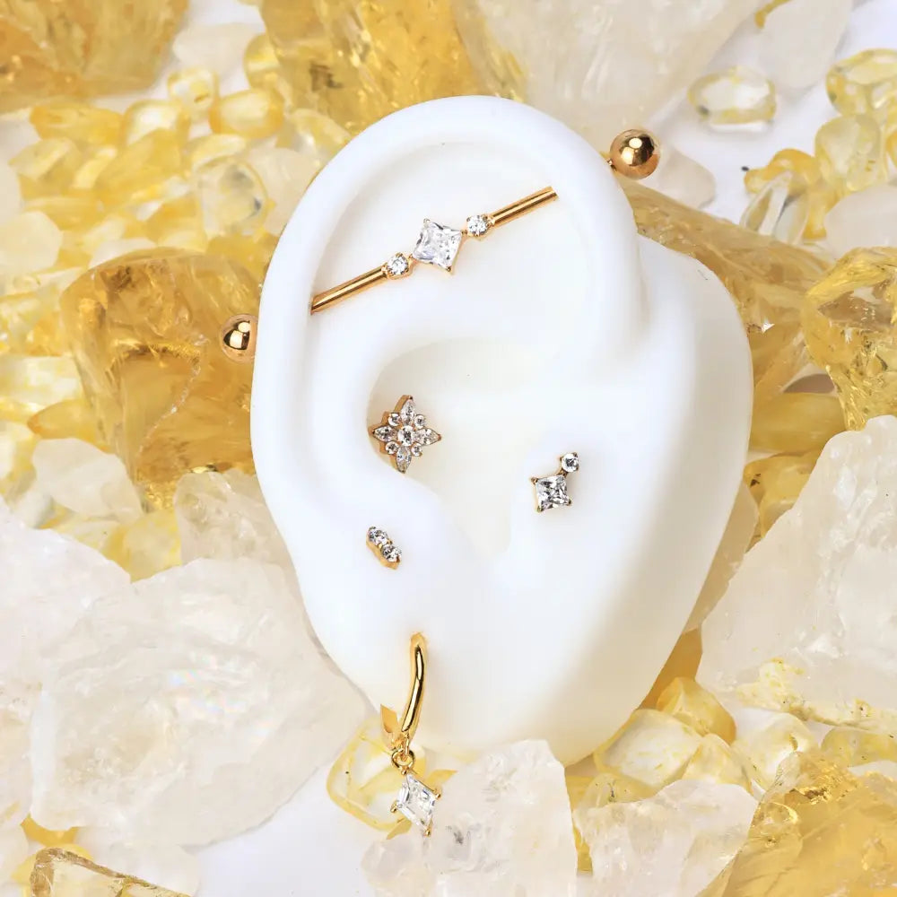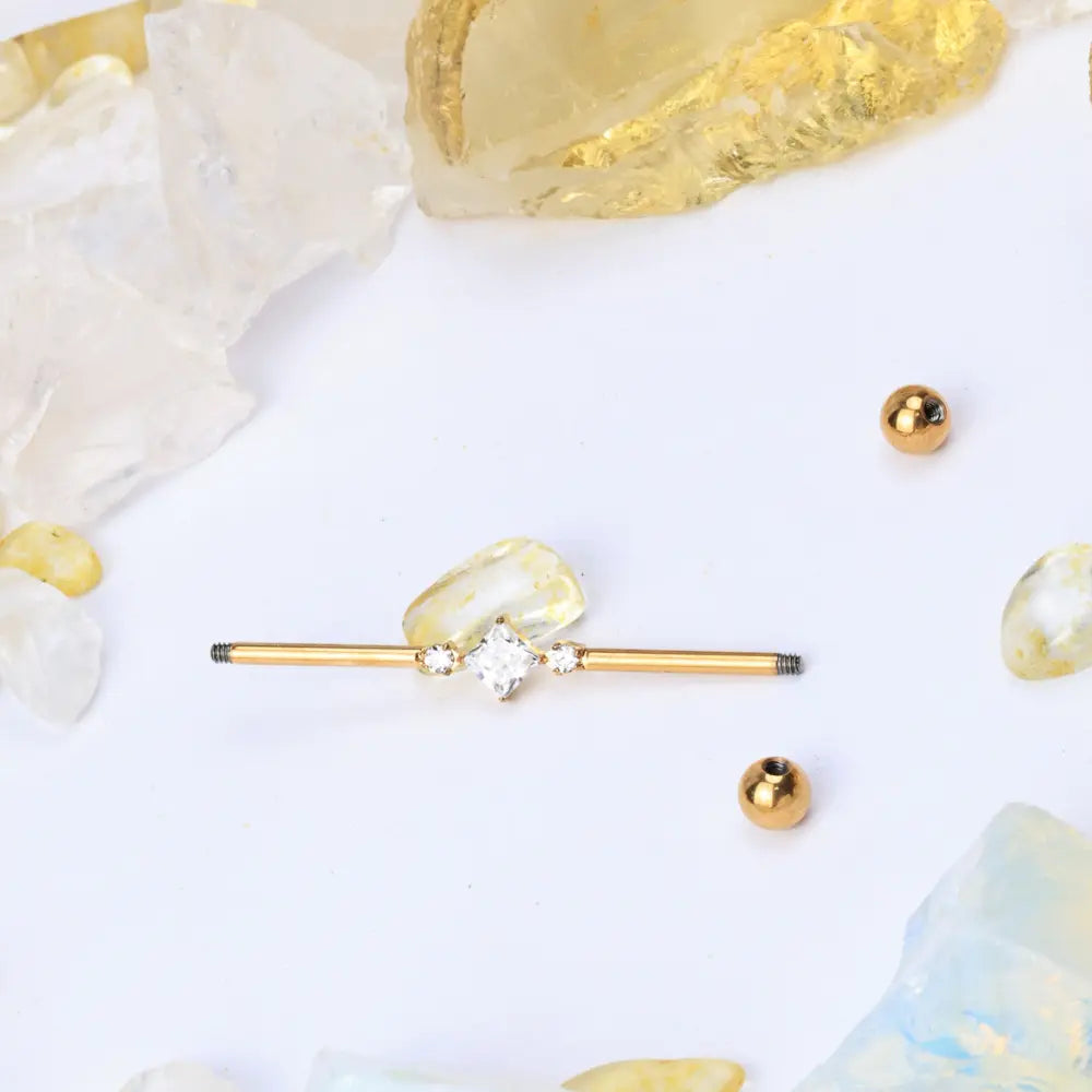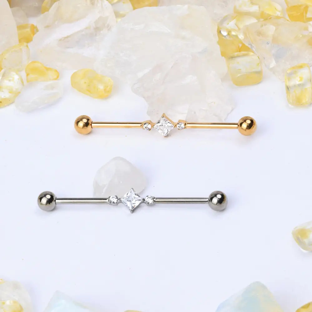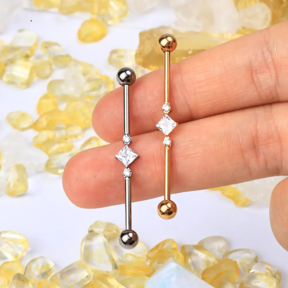 Titanium Diamond Sugar Cube Industrial Barbell (14G | 38mm)