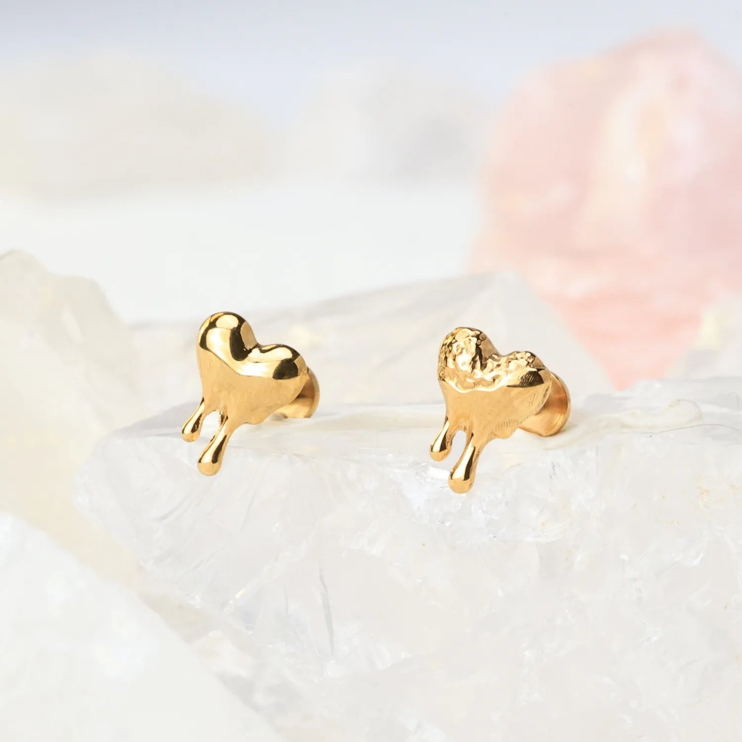 Indulge in the ultimate expression of love and luxury with our Titanium Dripping Heart Piercing Stud Earring. The unique, statement design features a special love heart with a dripping effect, symbolizing eternal and self-love. With its particular aura, this flat back earring is the perfect accessory to add a touch of sophistication and exclusivity to any outfit. Elevate your style and embrace the beauty of love with this exquisite earring.