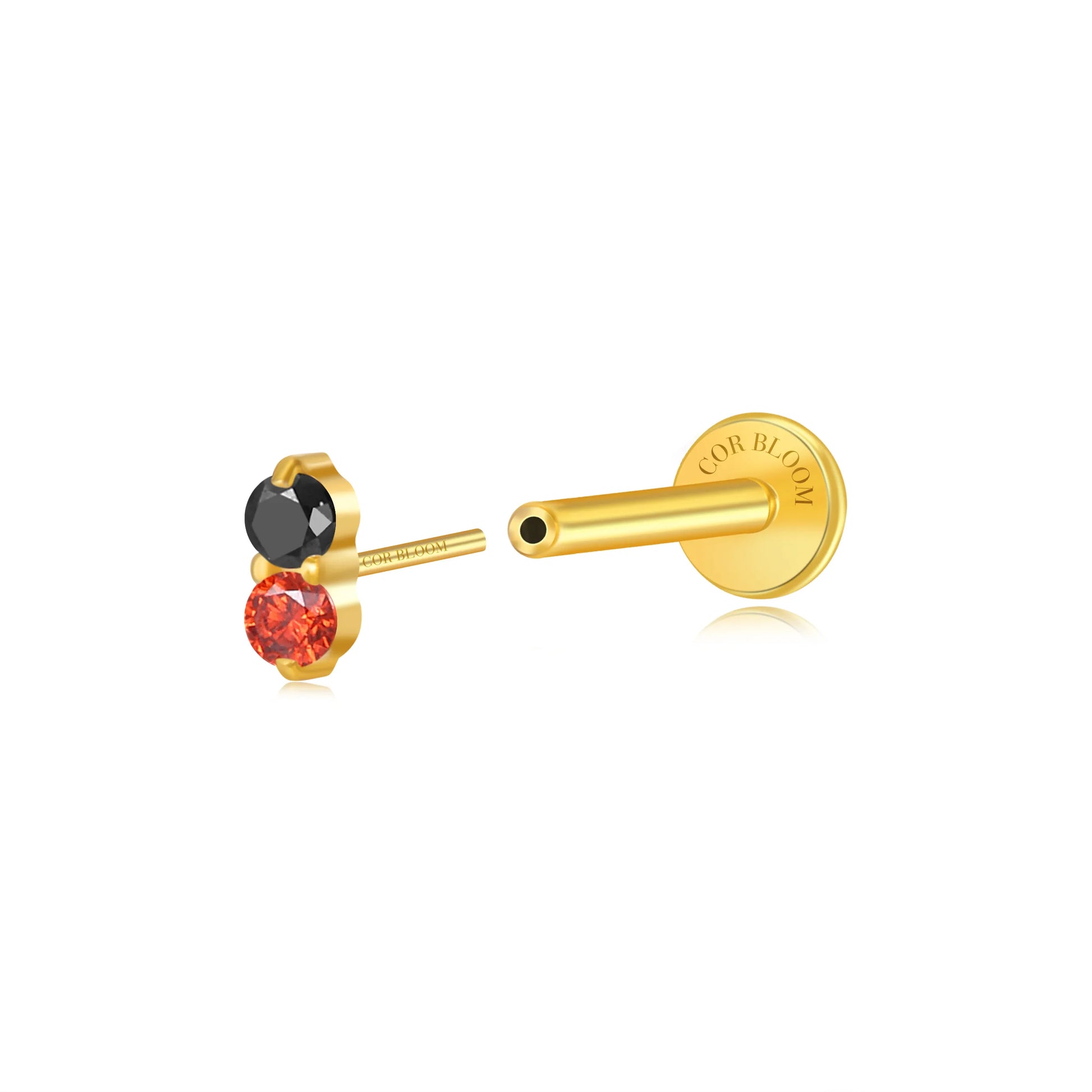 Titanium Edith Mini Duo Flat Back Stud - Night and Flame
