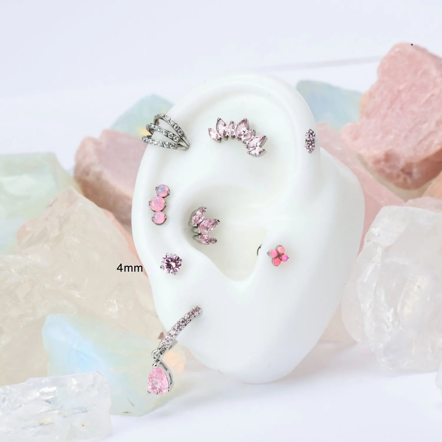 Titanium Elpis Pink Opal Trinity Cluster Flat Back Stud