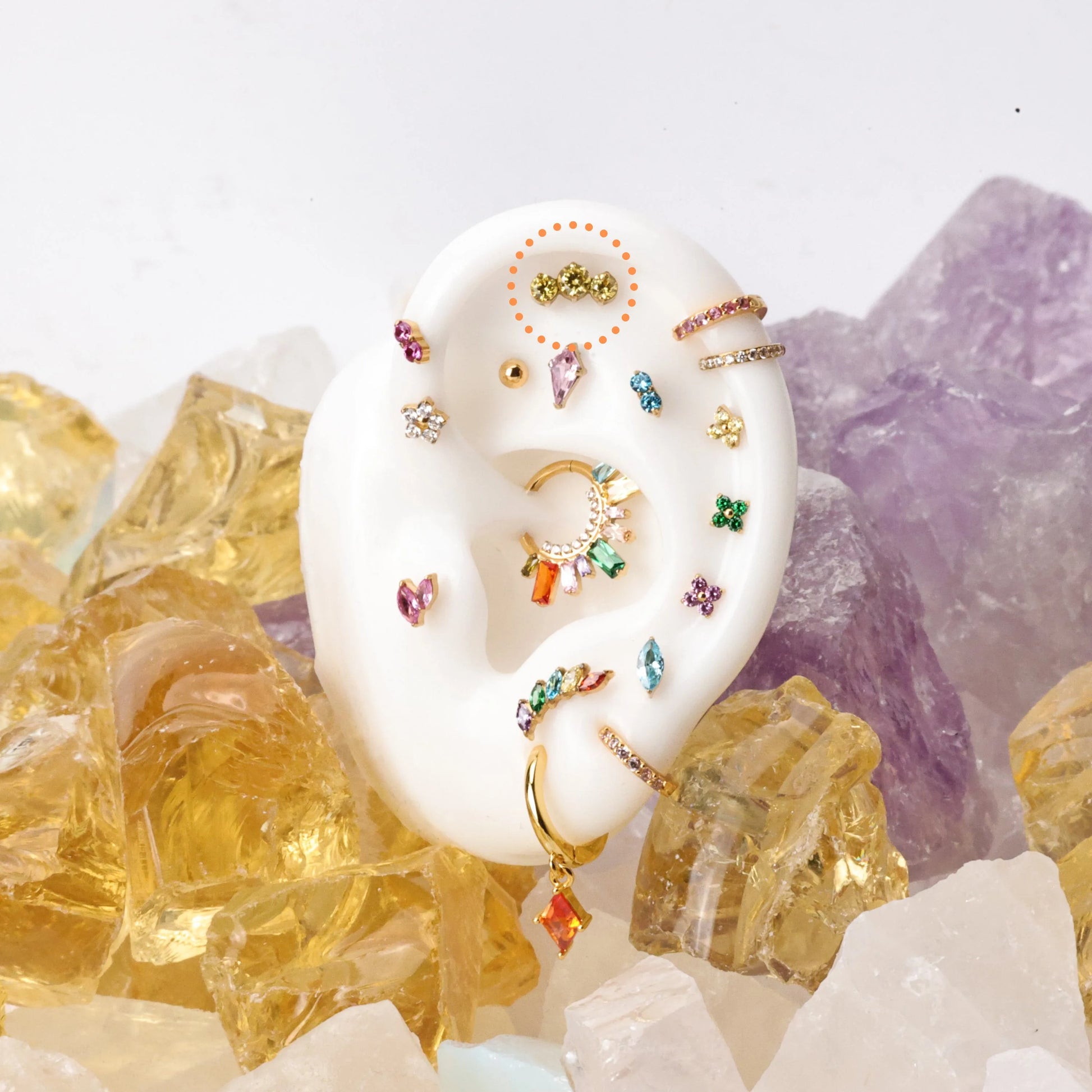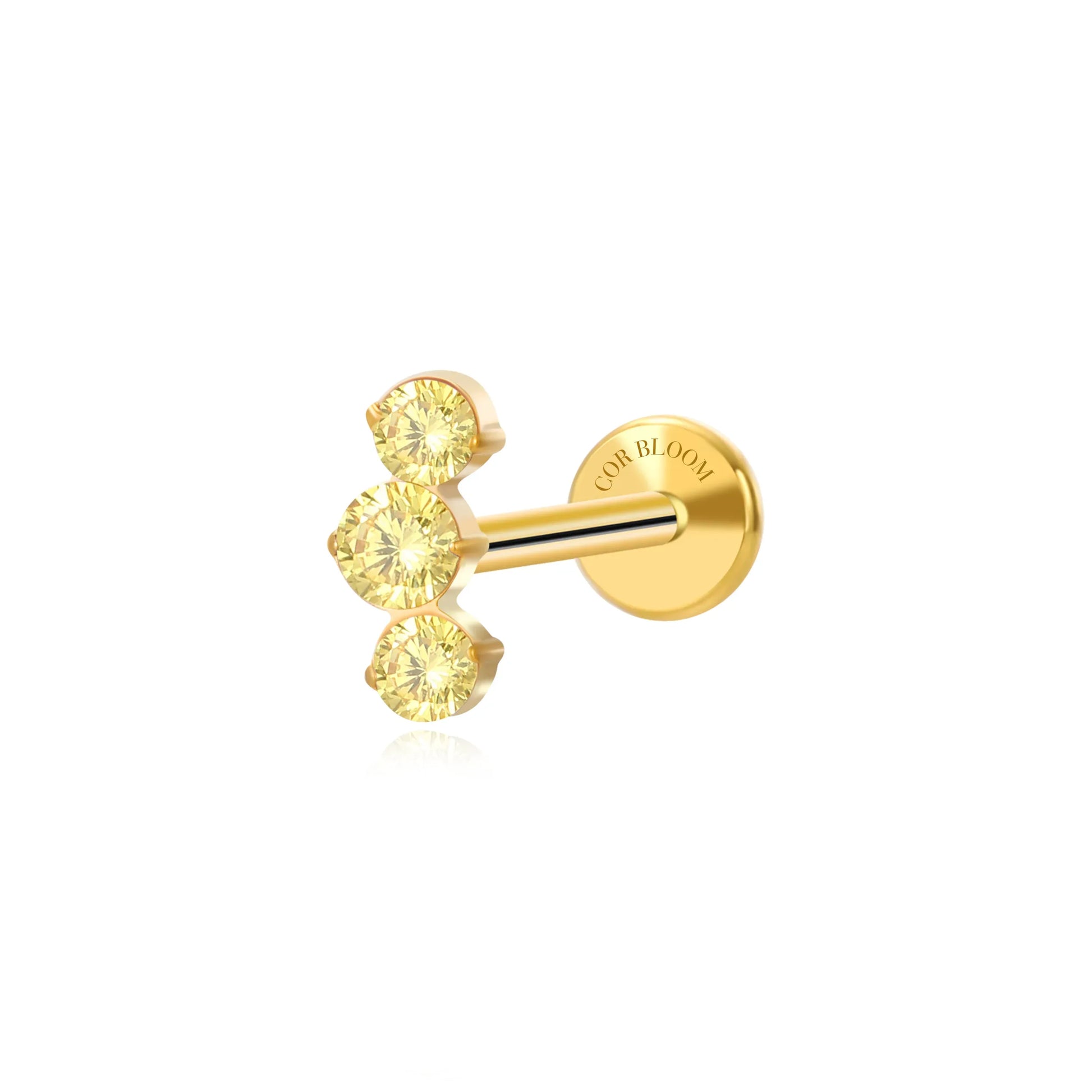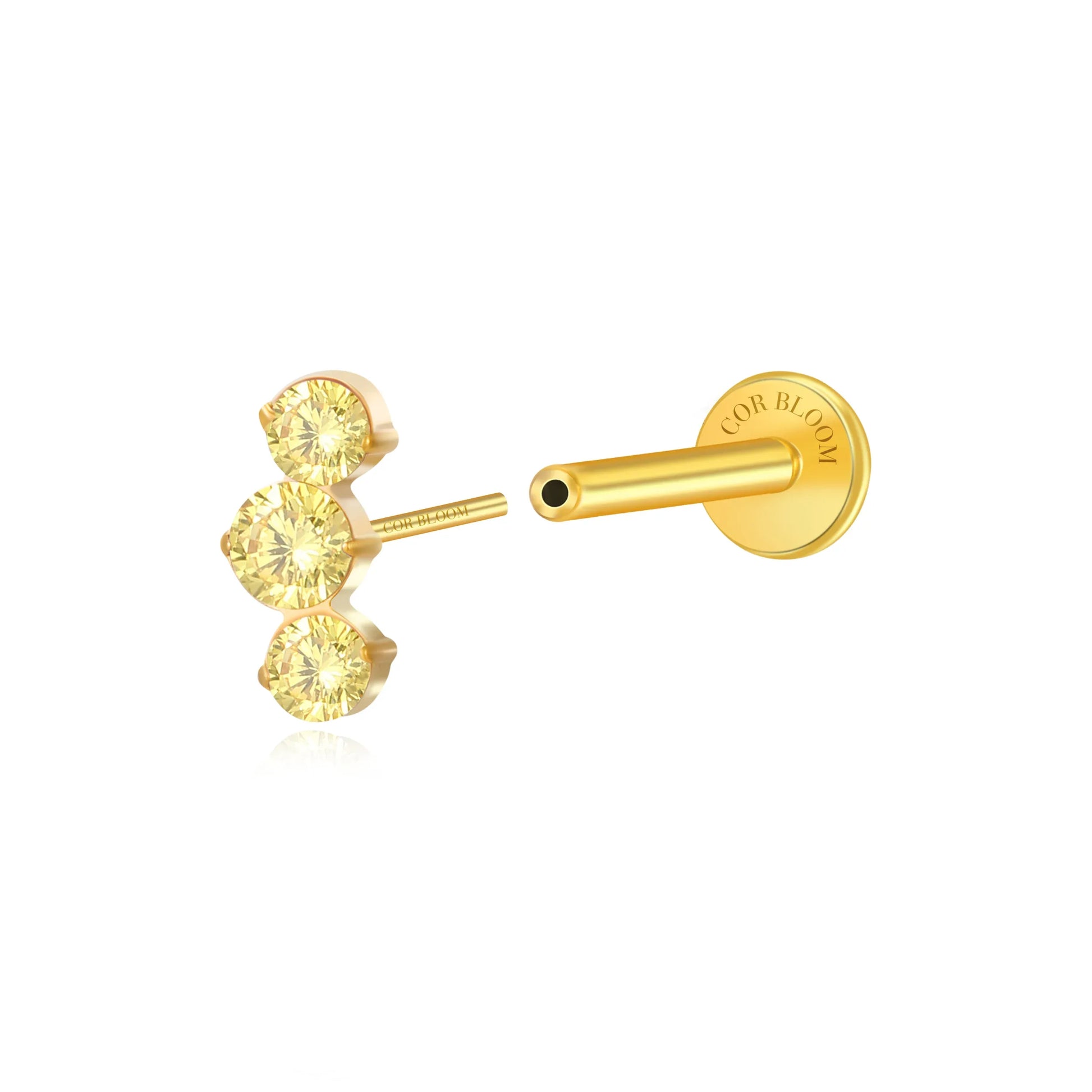 Titanium Elpis Yellow Citrine Trinity Cluster Flat Back Stud