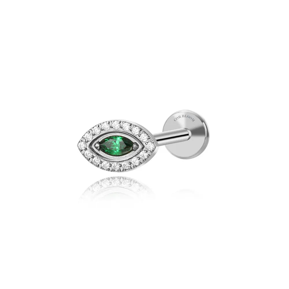 Titanium Green Emerald Marquise Eye Piercing Stud