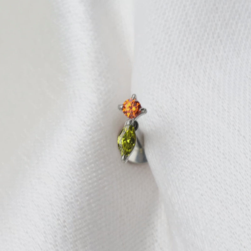 Featuring a delicate round-cut stone paired with a marquise-shaped stone beneath, this mini stud is designed to shine while staying sleek and comfortable. Thanks to its small and subtle size, it’s the perfect everyday piece for helix, tragus, forward helix, stacked lobes, and more.