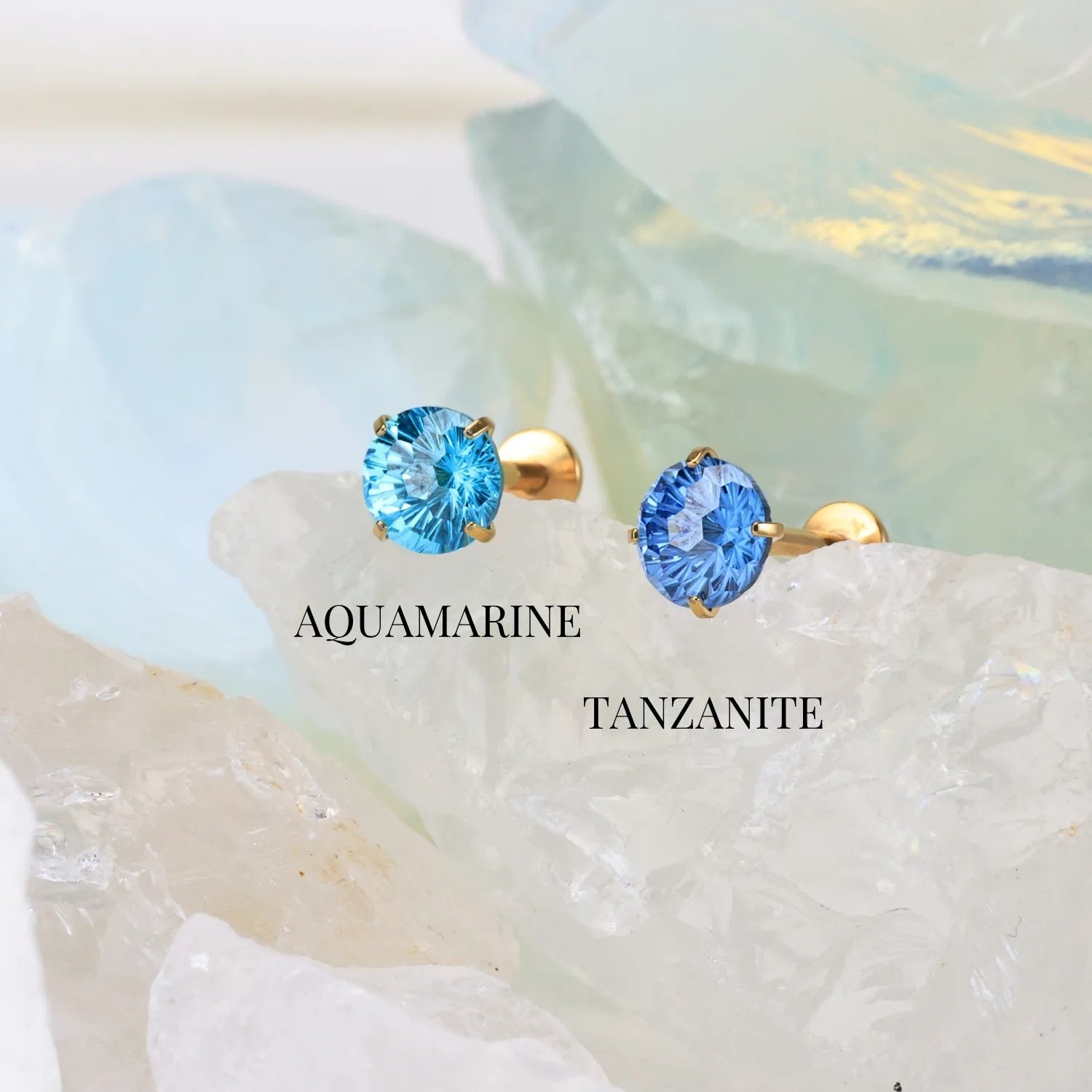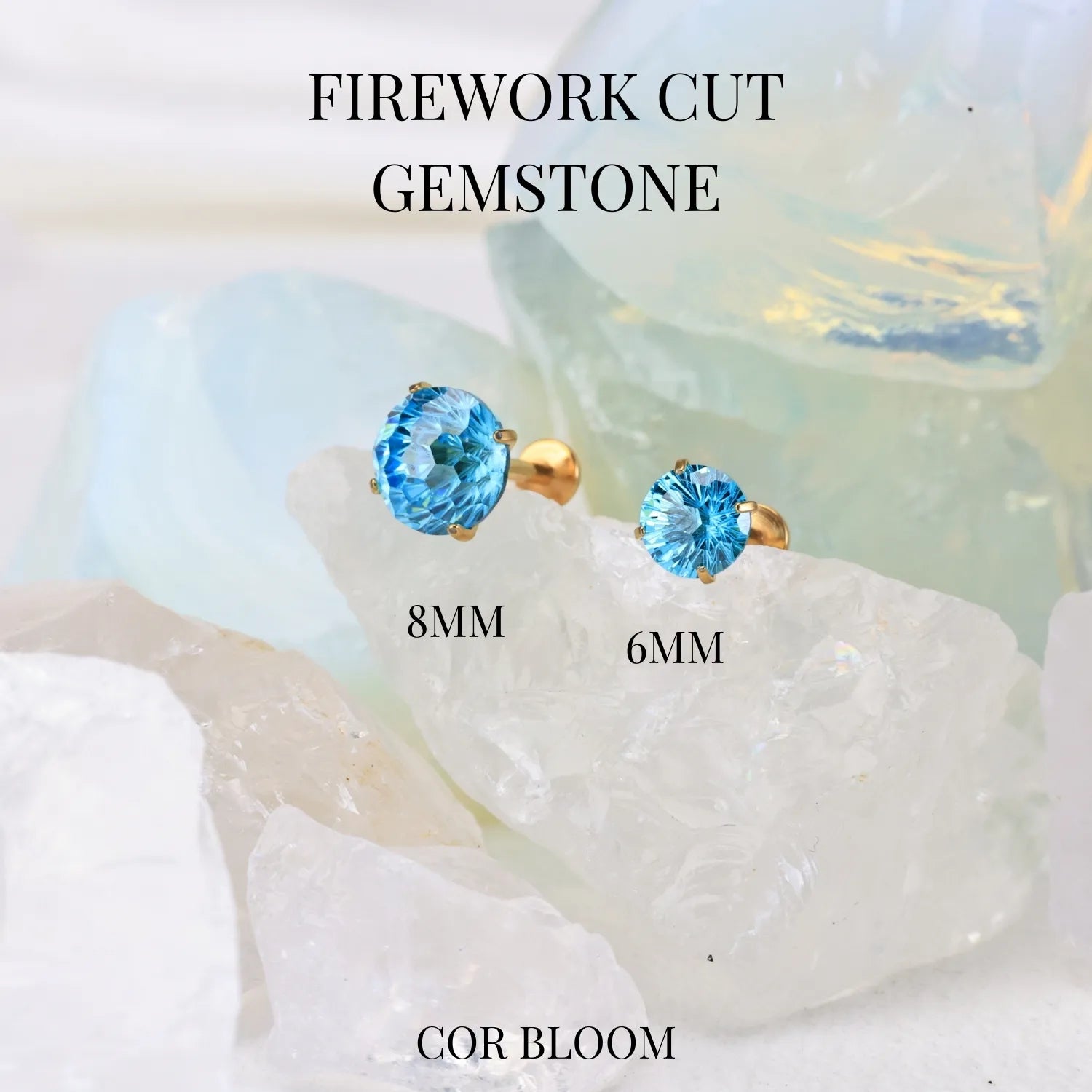 Perfect for your conch piercing thanks to its relatively large size, or any ear stack that makes a statement, this stunning Aquamarine gemstone features a captivating firework bloom at its heart, creating a dazzling display of light and brilliance.