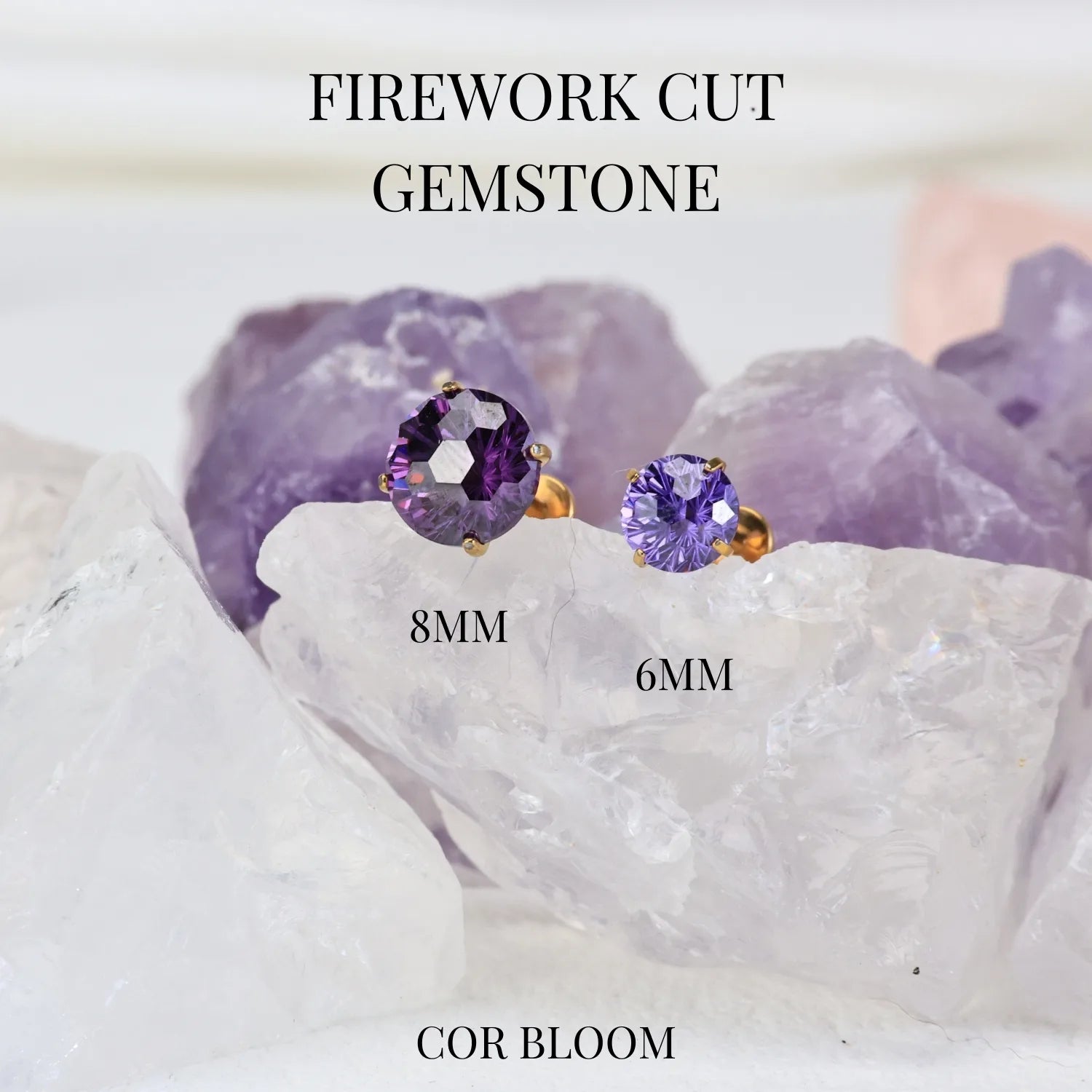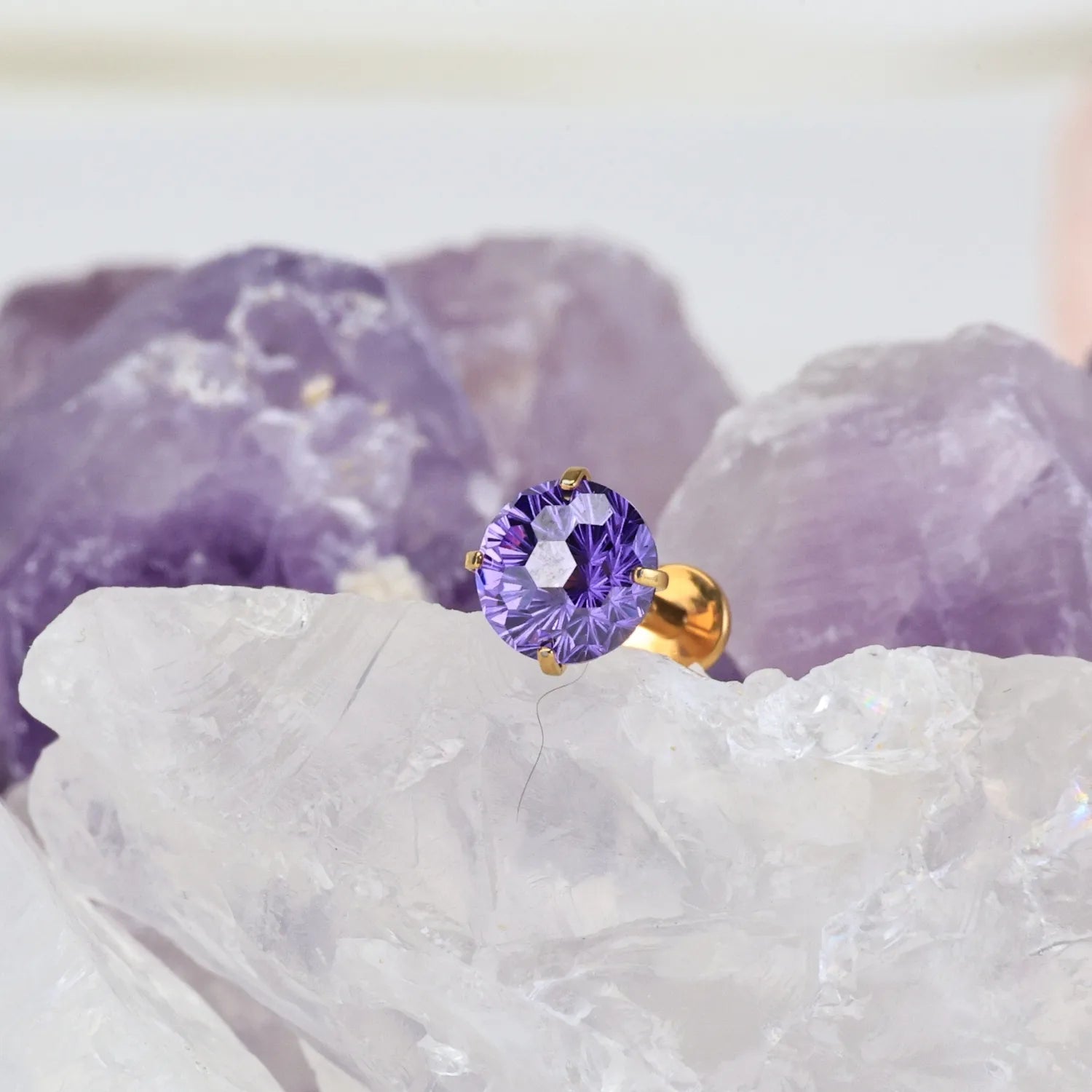 Titanium Firework Cut Purple Amethyst Piercing Stud