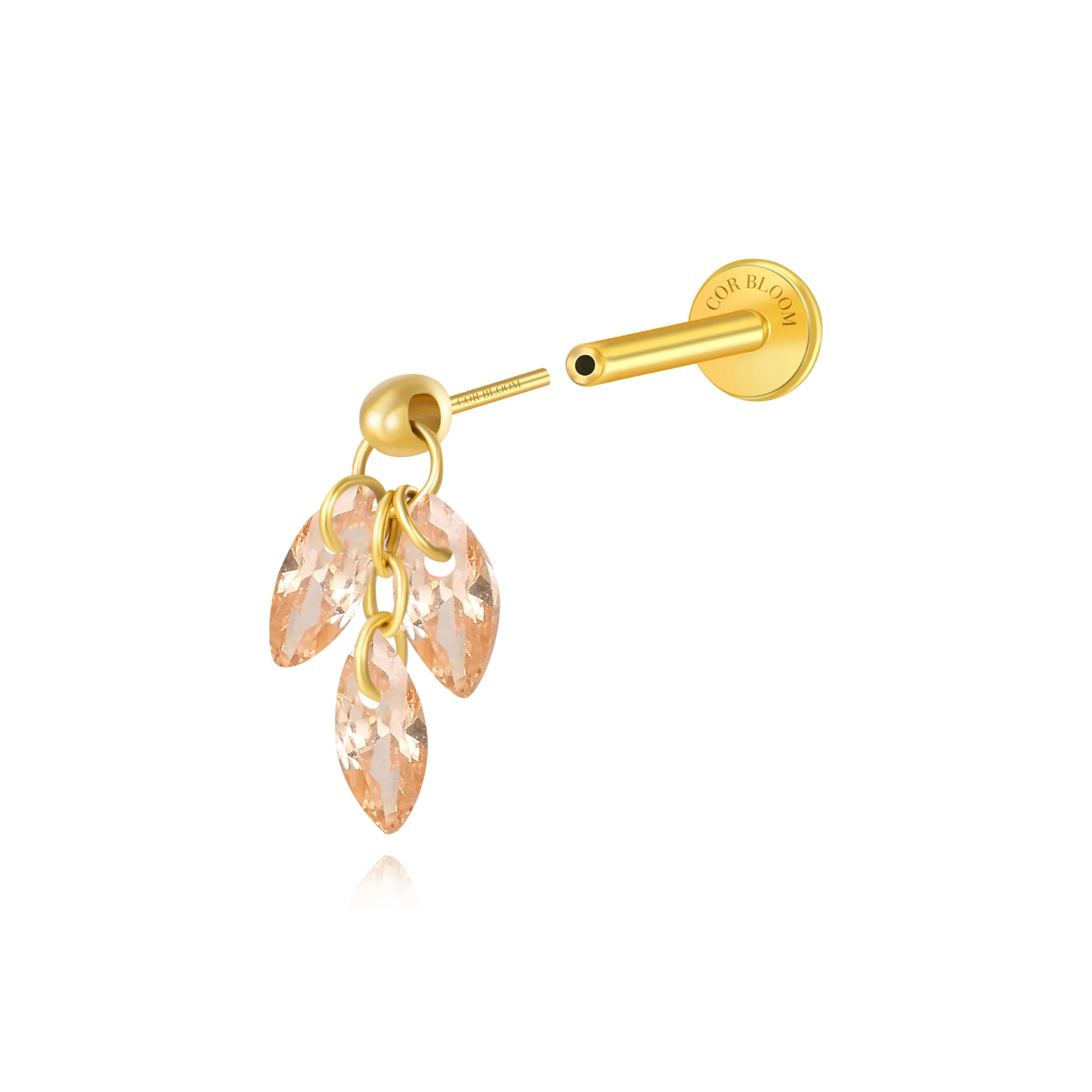 Titanium Floating Champagne Plume Flat Back Earring | Hidden Helix/Rook