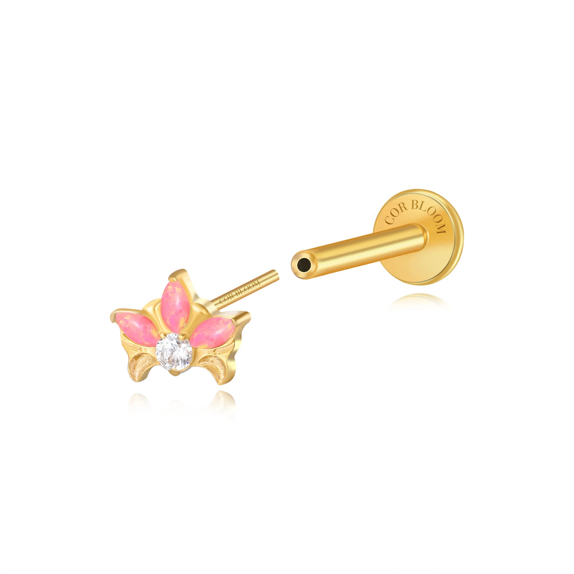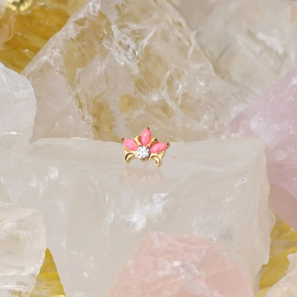 Titanium Hermes Princess Pink Opal Lotus Crown Stud