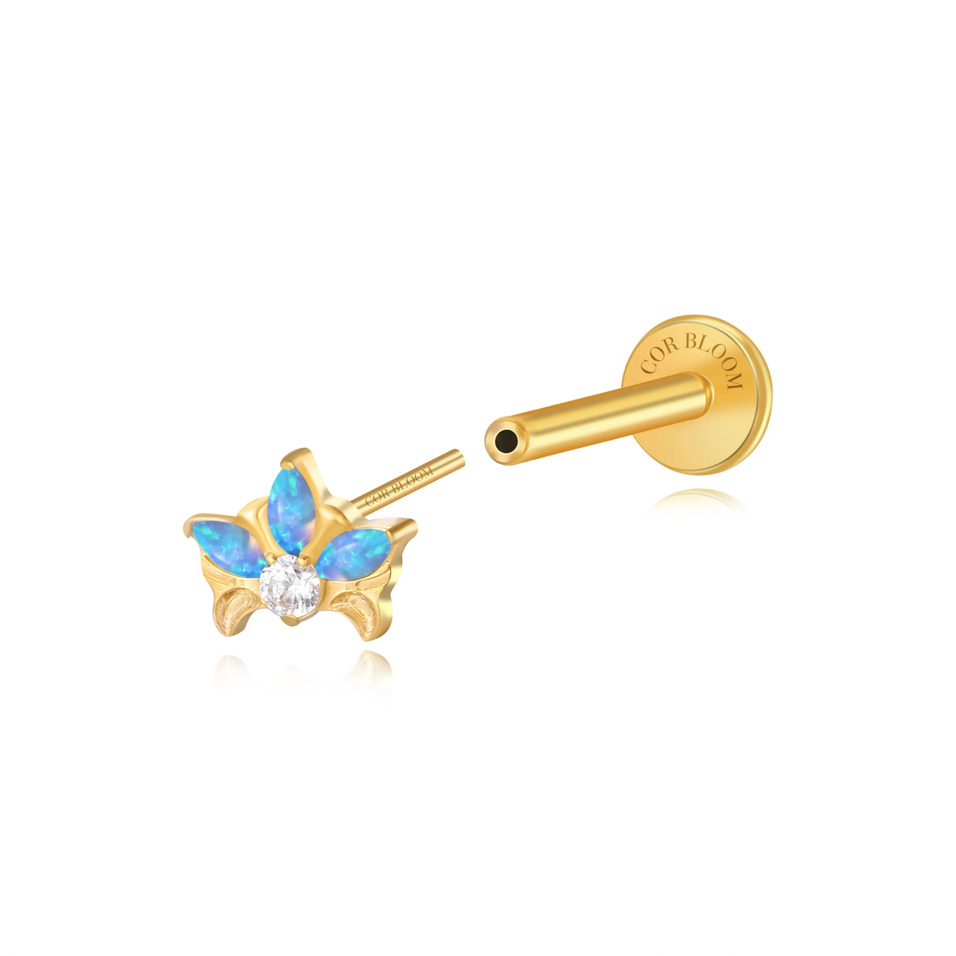 Titanium Hermes Royal Blue Opal Lotus Crown Stud