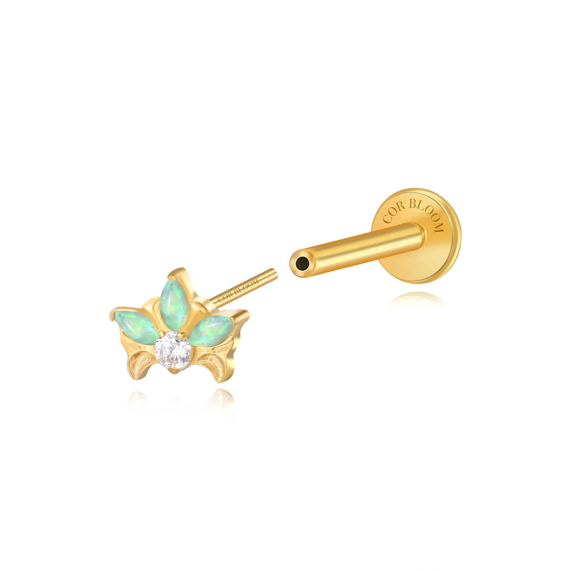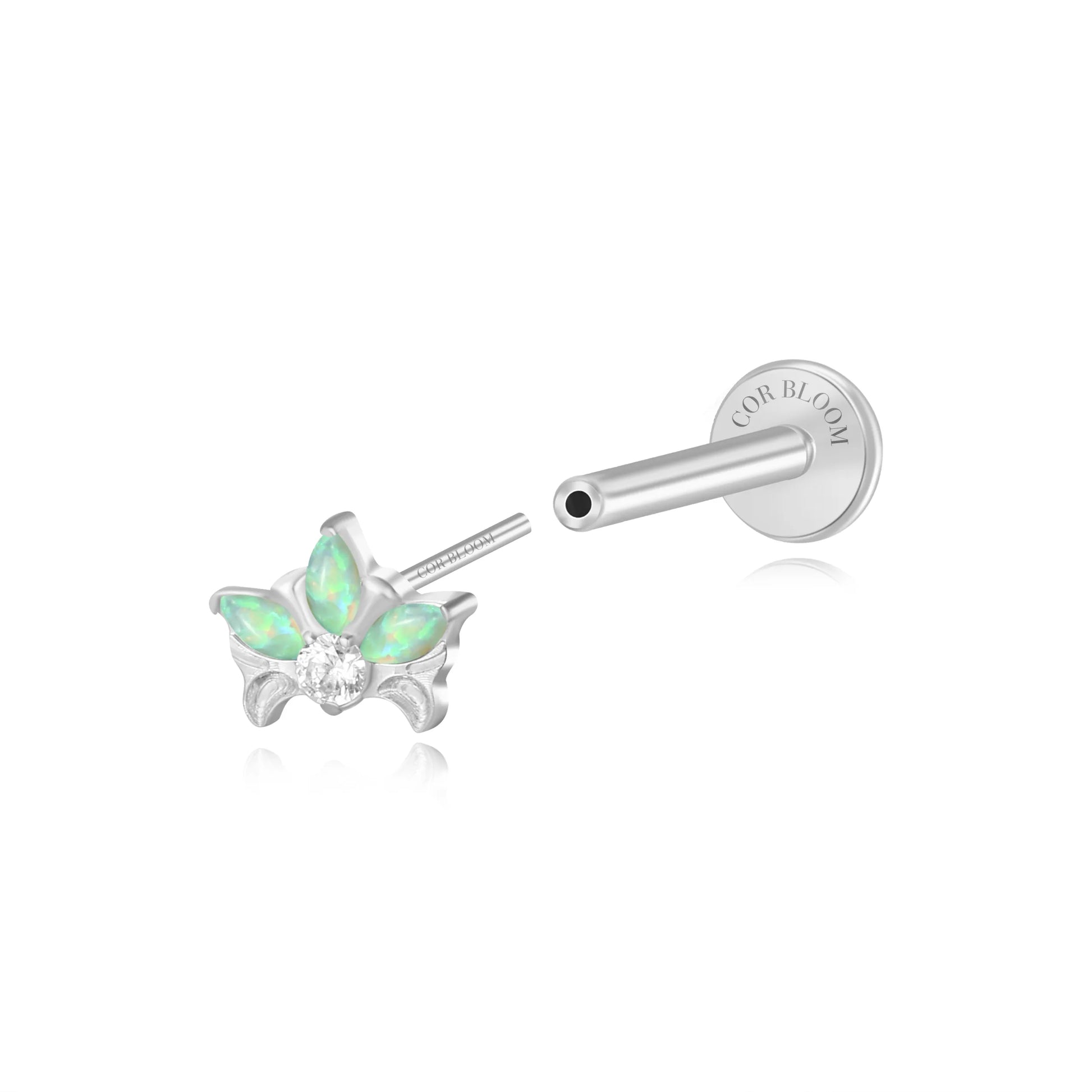Titanium Hermes Tranquil Green Opal Lotus Crown Stud