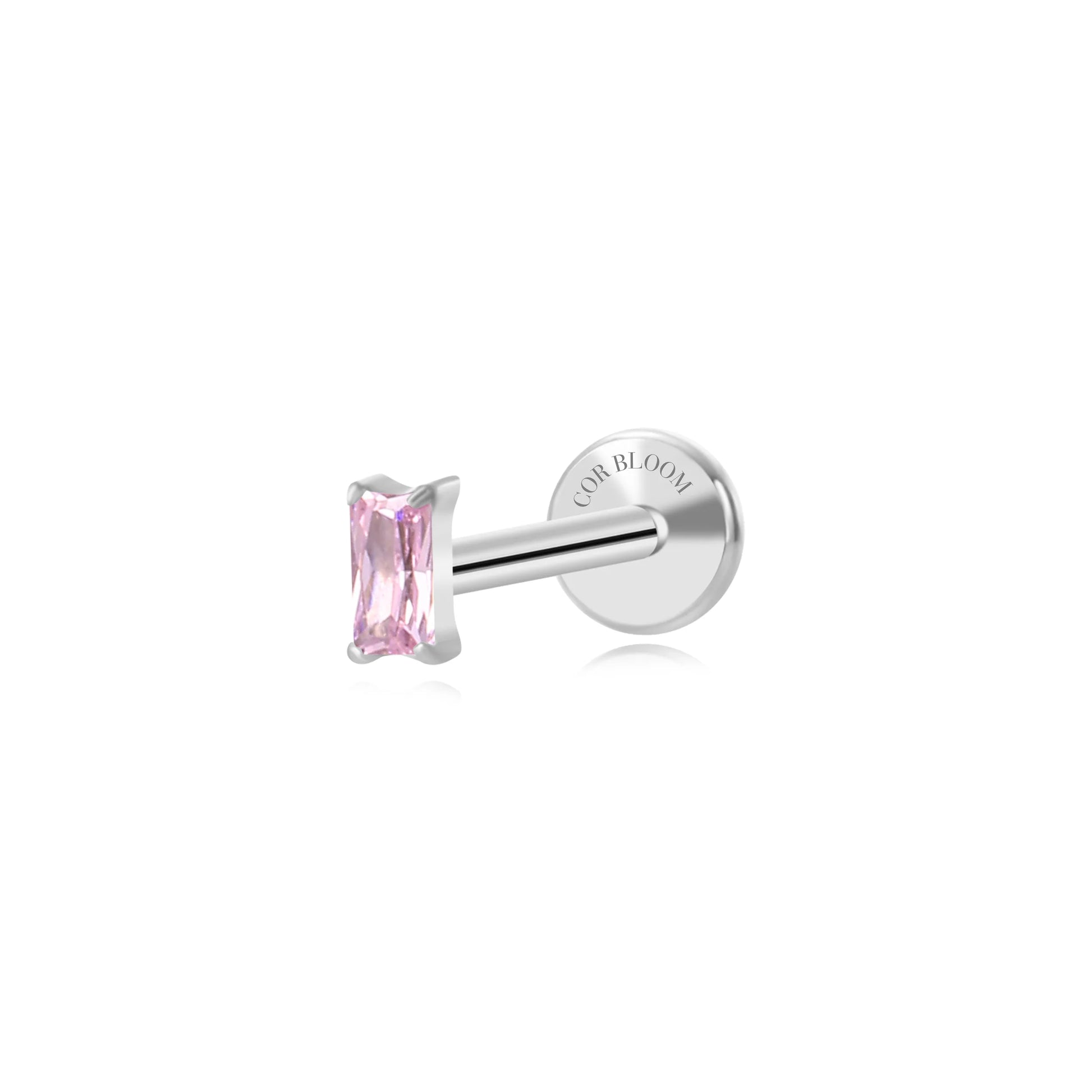 Introducing the Titanium Irida Small Rectangular Baguette Flat Back Stud! This dainty and sparkly baguette stud is perfect for any piercing location and is a must-have for jewelry lovers who appreciate teeny tiny sparkles. Elevate your look with this beautiful and versatile stud.