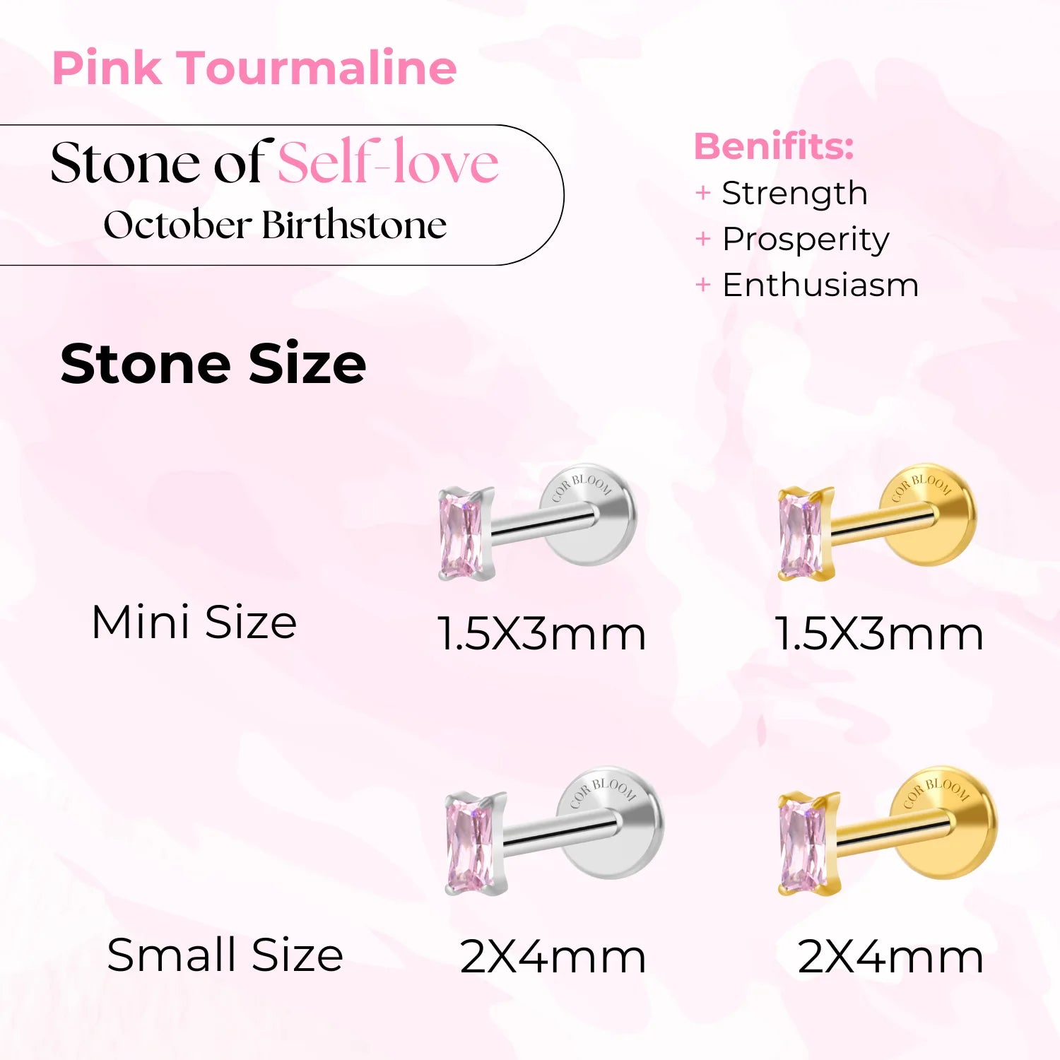 Titanium Irida Small Baguette Stud - Pink Tourmaline