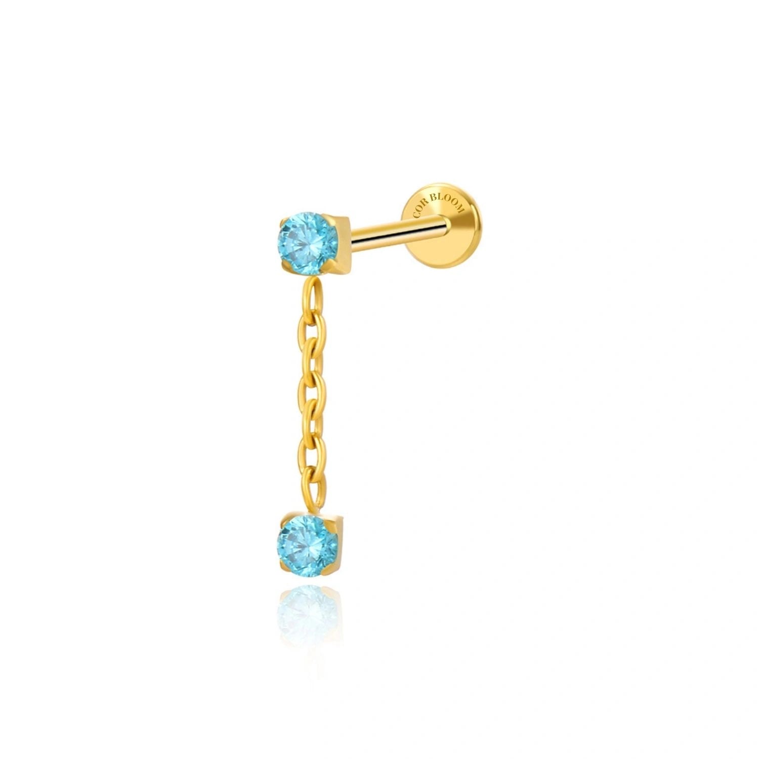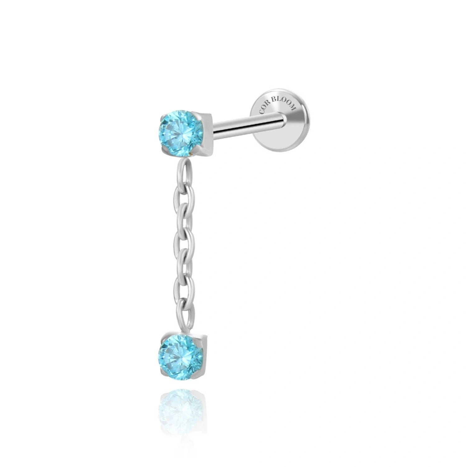 Titanium Isla Aquamarine Dangling Duo CZ Flat Back Stud