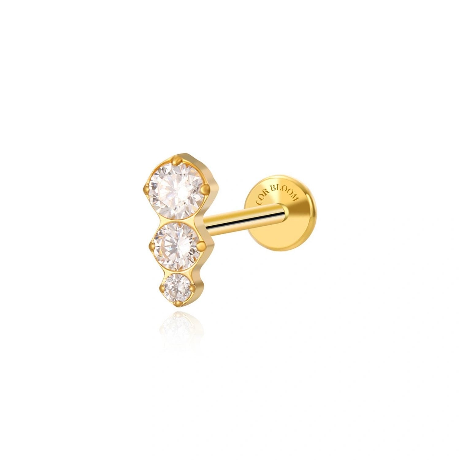 Titanium Minnie Kite-Cut Stone Flat Back Stud - Yellow Gold