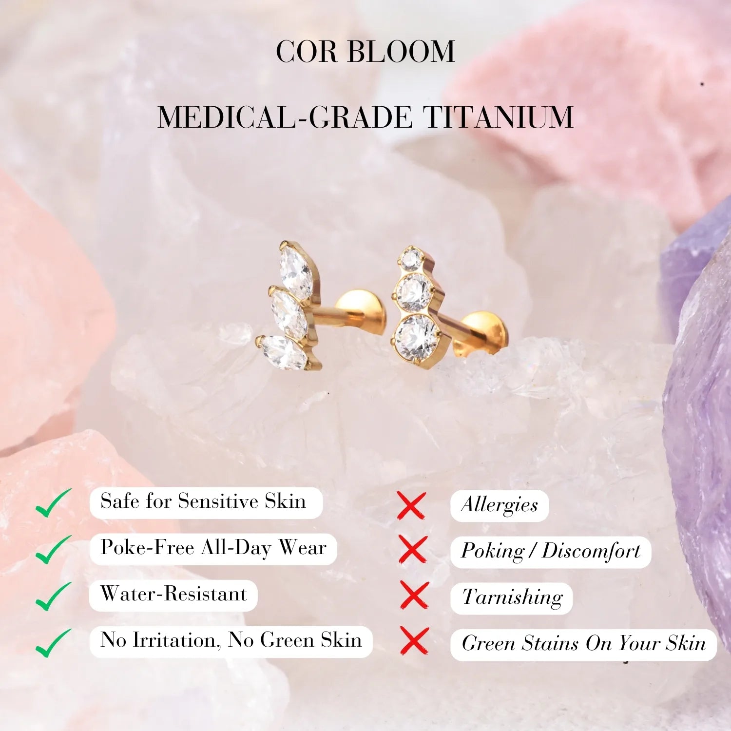 ❀ ASTM F136 Implant-Grade Titanium — safe, durable, tarnish-resistant, and ideal for both initial and healed piercings