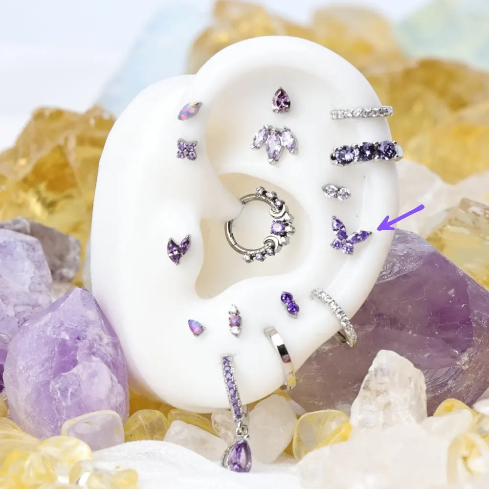 Introducing our Titanium Kimana Amethyst Butterfly Flat Back Stud, the perfect addition to your everyday cute ear stack ideas. Crafted with a cute butterfly design, this stud exudes grace and sophistication. Elevate your style with this exclusive piece, perfect for any occasion.