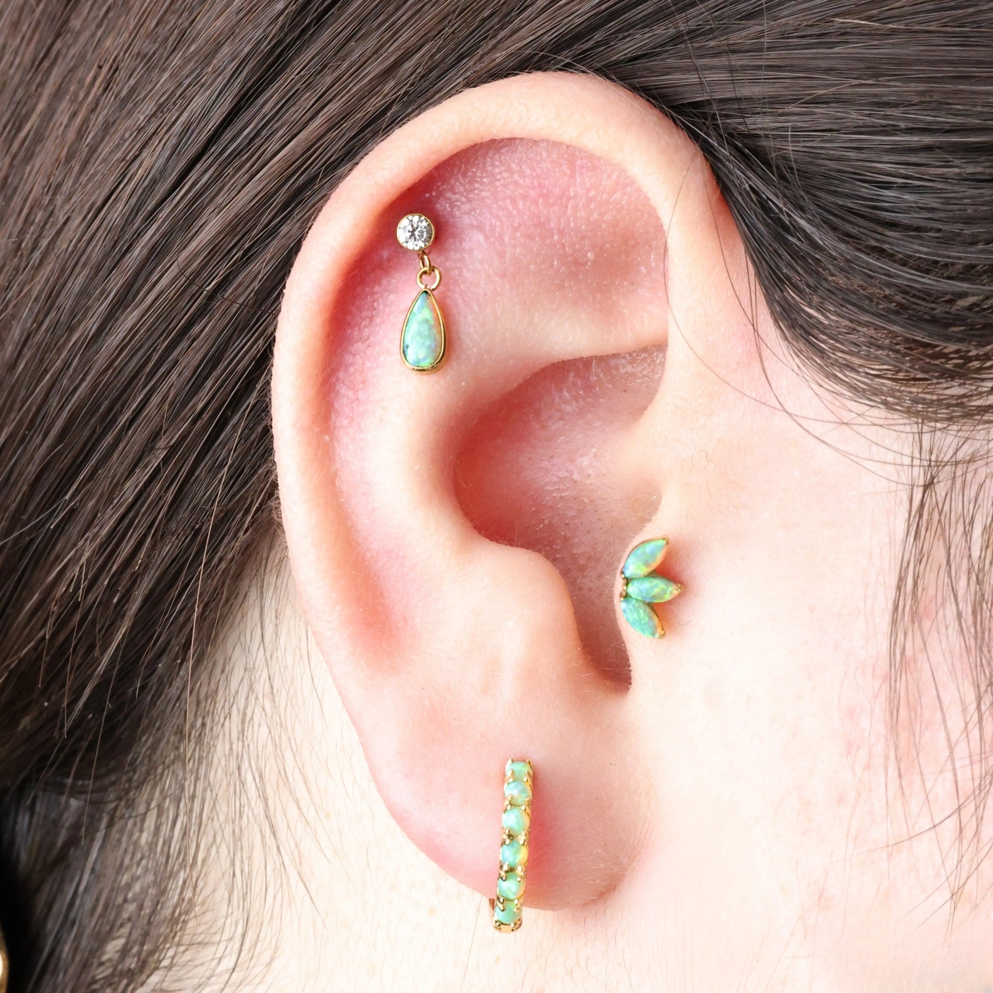 Titanium Kratos 3-Petal Dreamy Green Opal Stud