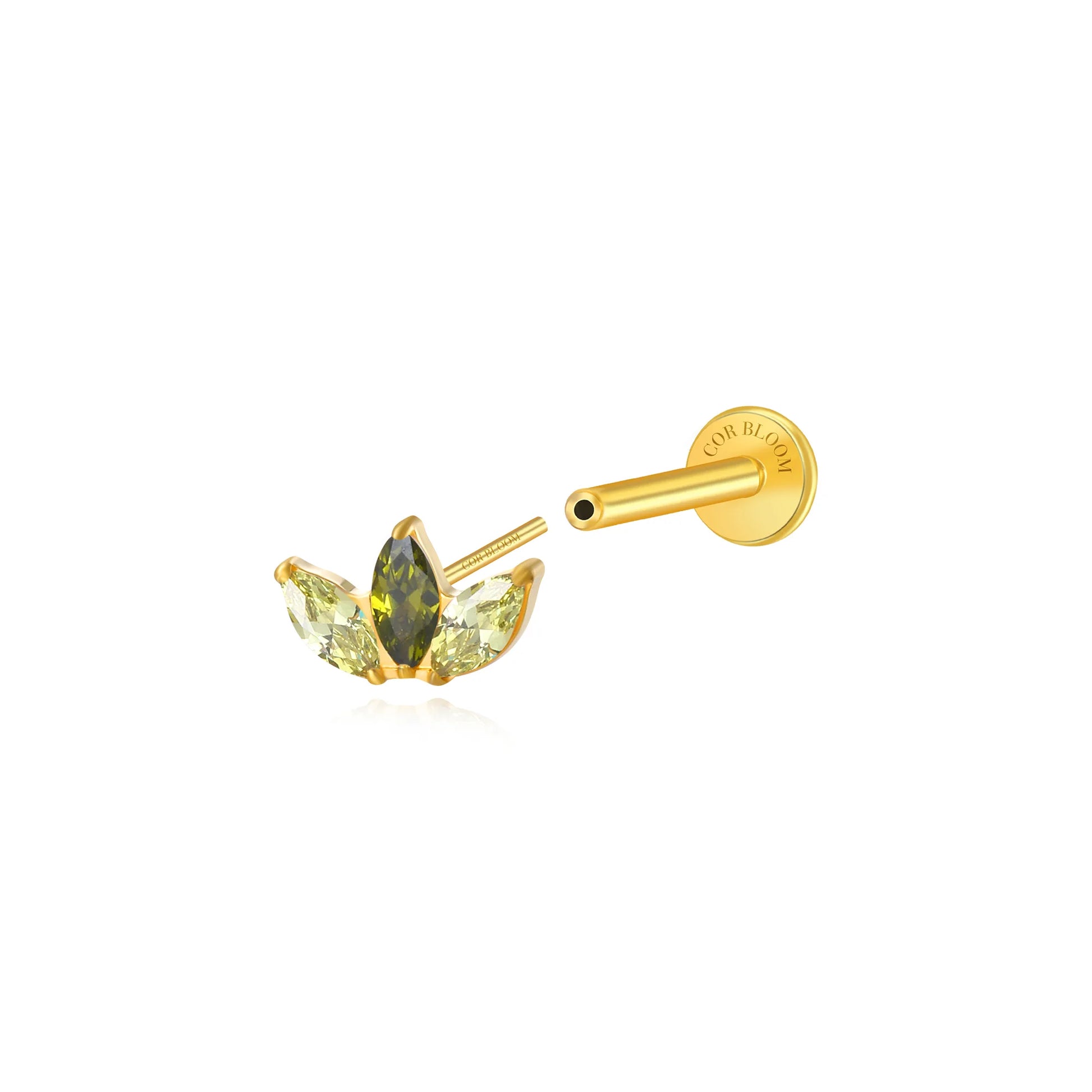 Titanium Kratos 3-Petal Peridot Flat Back Stud - Good Luck