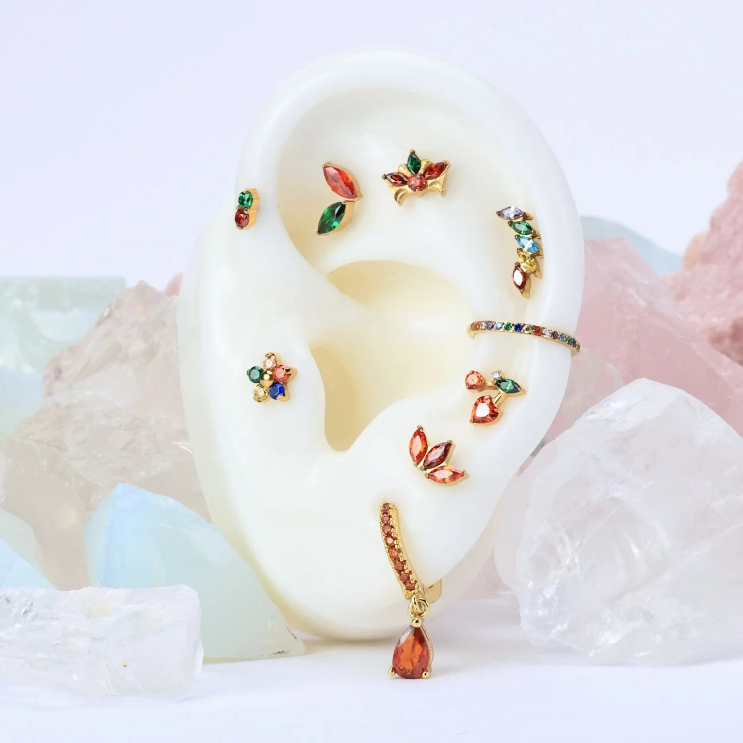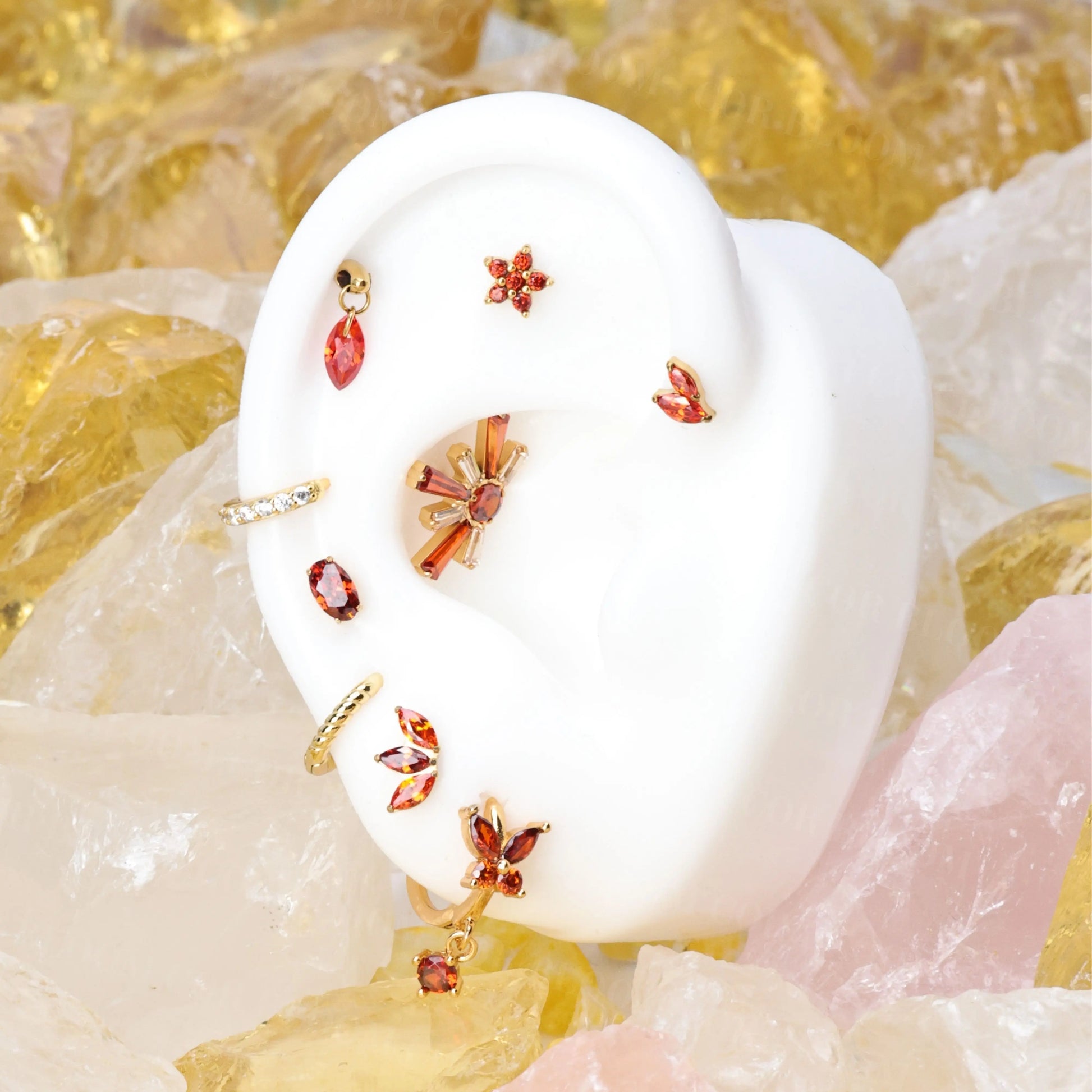Indulge in the luxurious combination of fiery red and orange gems with our Titanium Kratos 3-Petal Red Garnet Stud. With a delicate blend of colors reminiscent of a blazing fire and the vibrant hue of a rose, these studs exude elegance and sophistication. Elevate your style with this exclusive, premium piece.