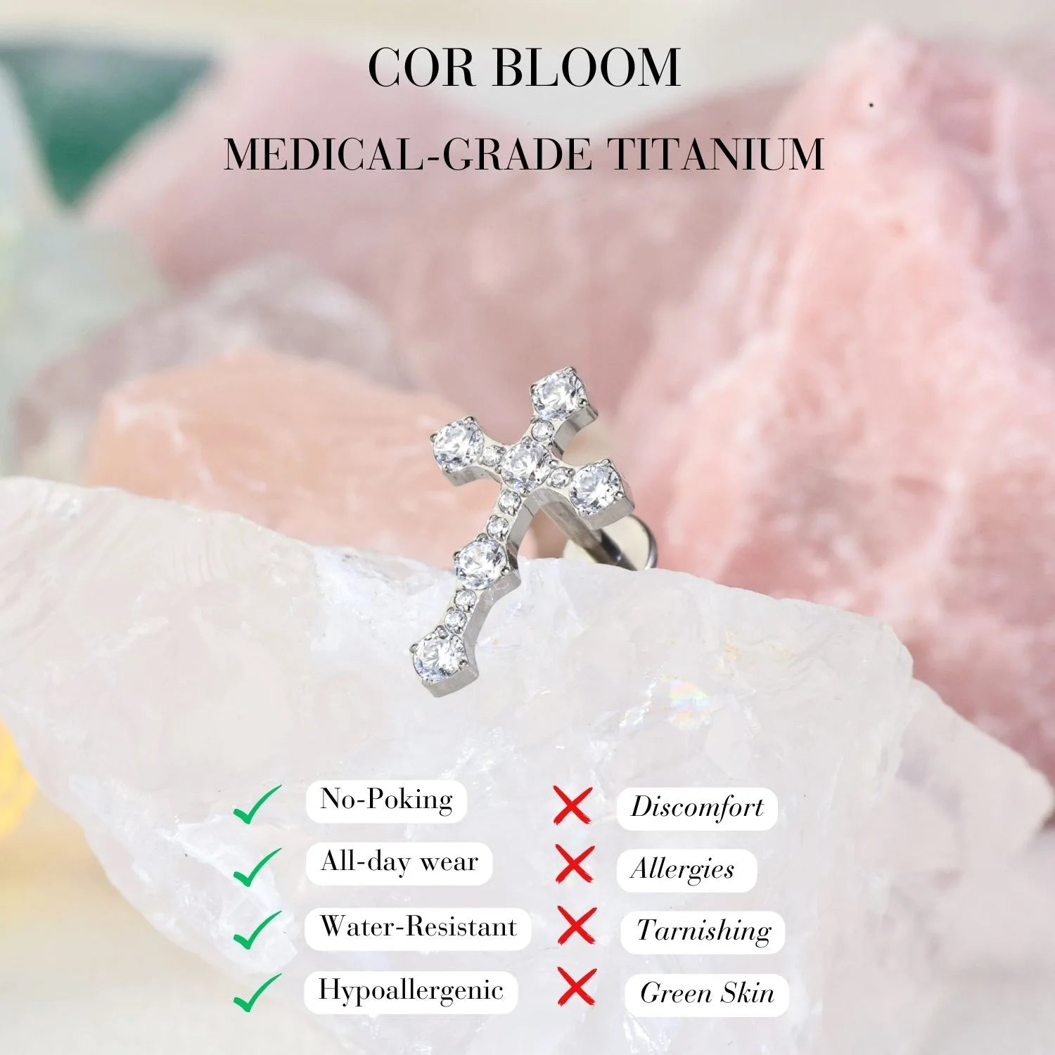 At Cor Bloom, our Titanium Jewelry is meticulously crafted to be water-resistant, offering you the freedom to wear it confidently near water. Nevertheless, to uphold its pristine appearance over time, we advise minimizing prolonged exposure to water, chemicals, moisture, chlorinated water, and cleansing products. By following these care instructions, you can help ensure that your jewelry retains its beauty and longevity for years to come.