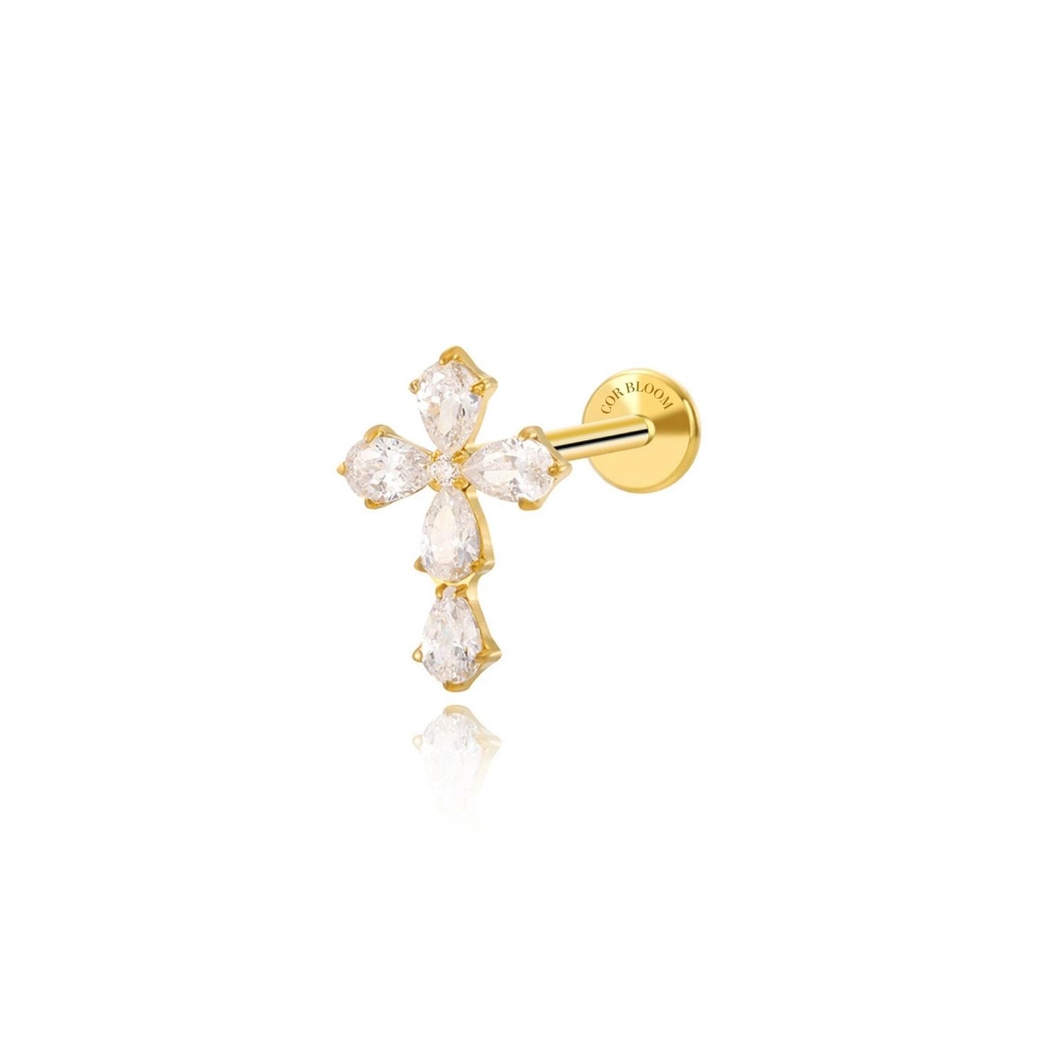 Titanium Minnie Kite-Cut Stone Flat Back Stud - Yellow Gold