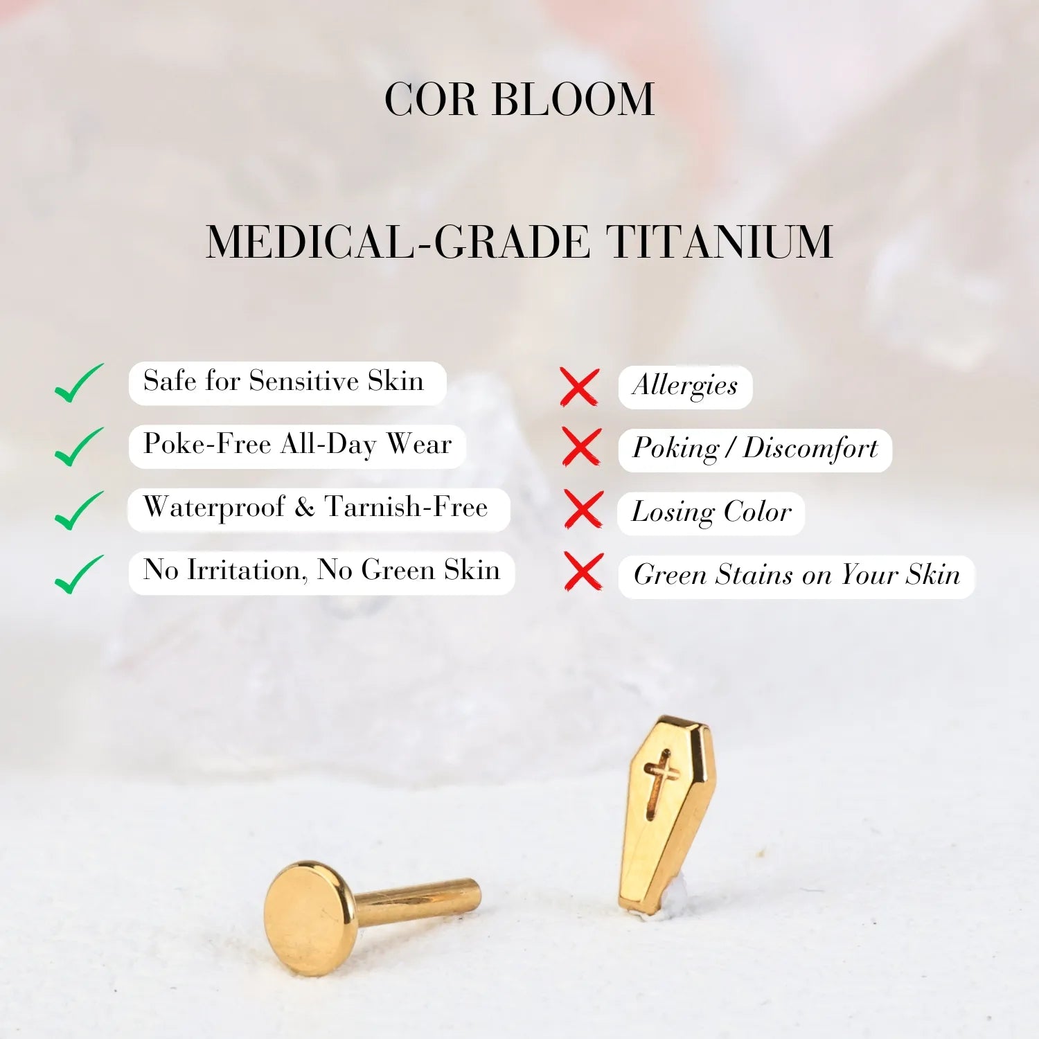 ❀ ASTM F136 Implant-Grade Titanium — safe, durable, tarnish-resistant, and ideal for both initial and healed piercings