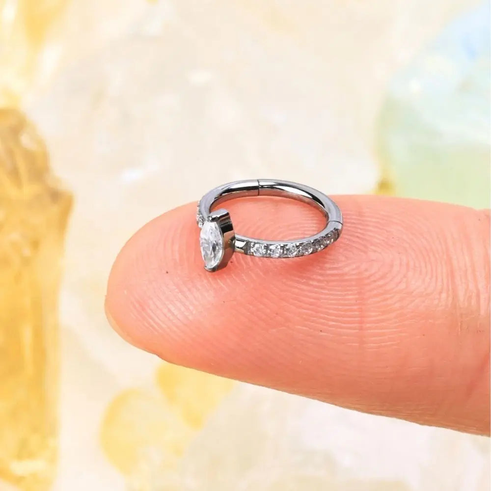 Titanium Marquise Diamond Clicker | Helix Ring | Conch Hoop