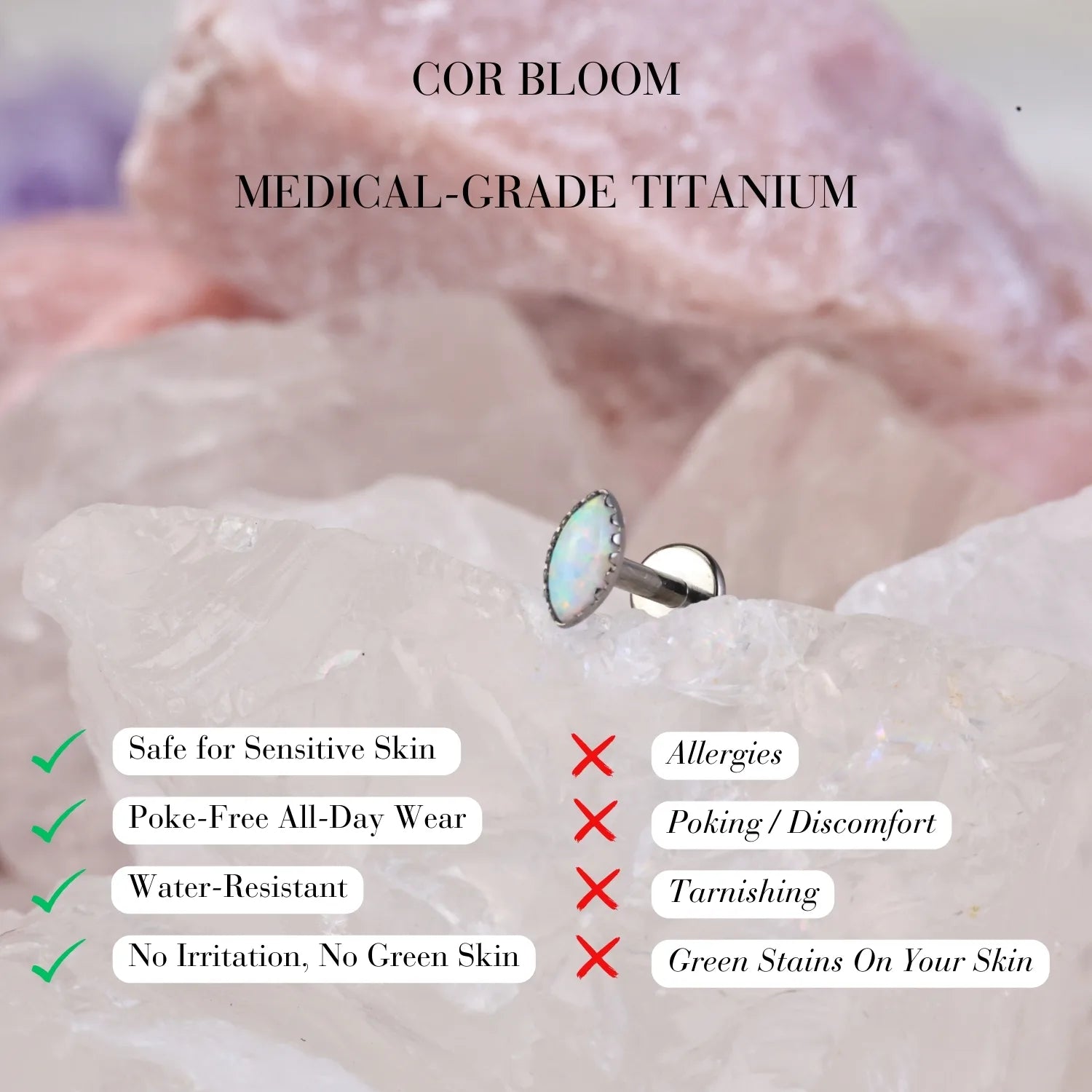 ❀ ASTM F136 Implant-Grade Titanium — safe, durable, tarnish-resistant, and ideal for both initial and healed piercings