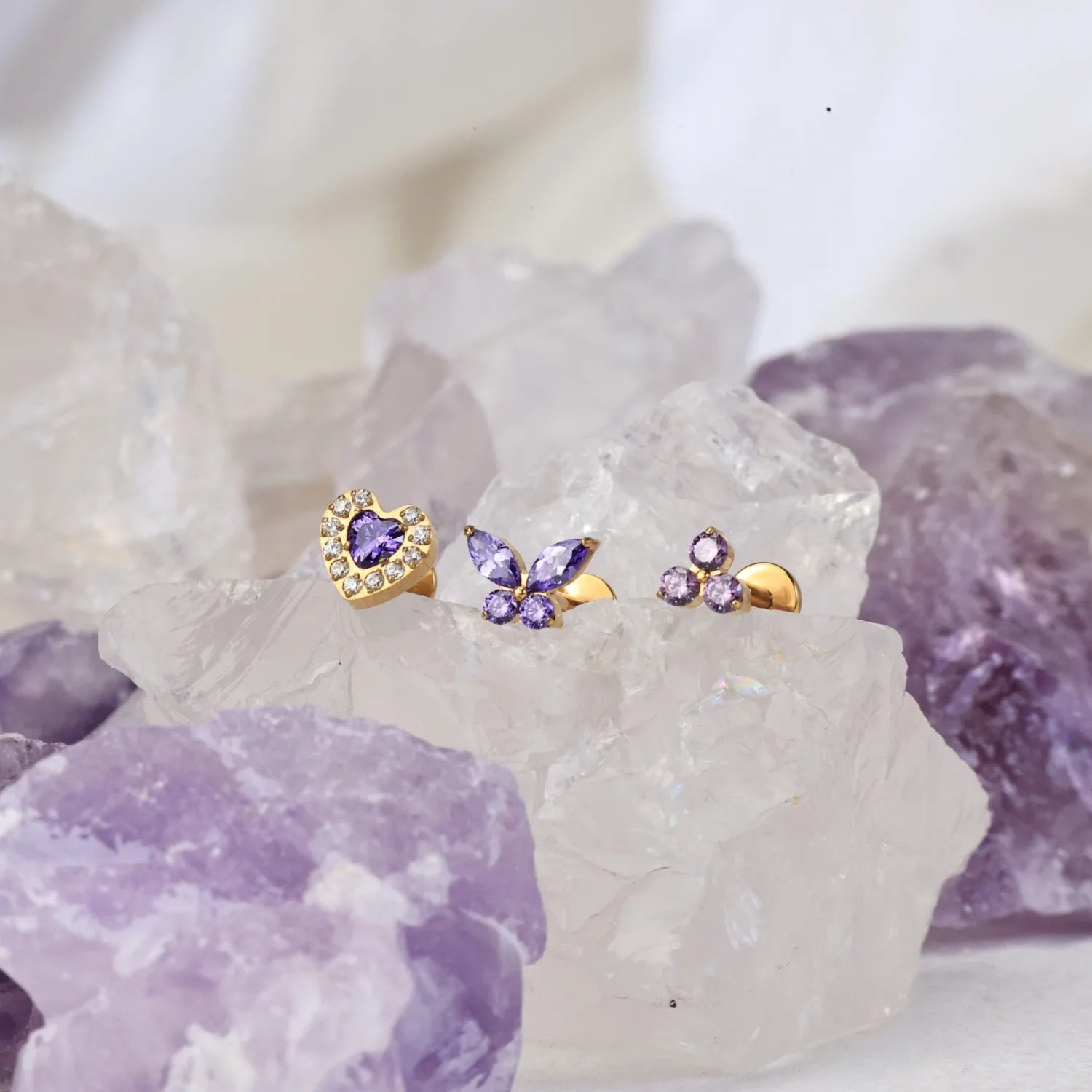 Titanium Liberty Amethyst Butterfly Flat Back Stud