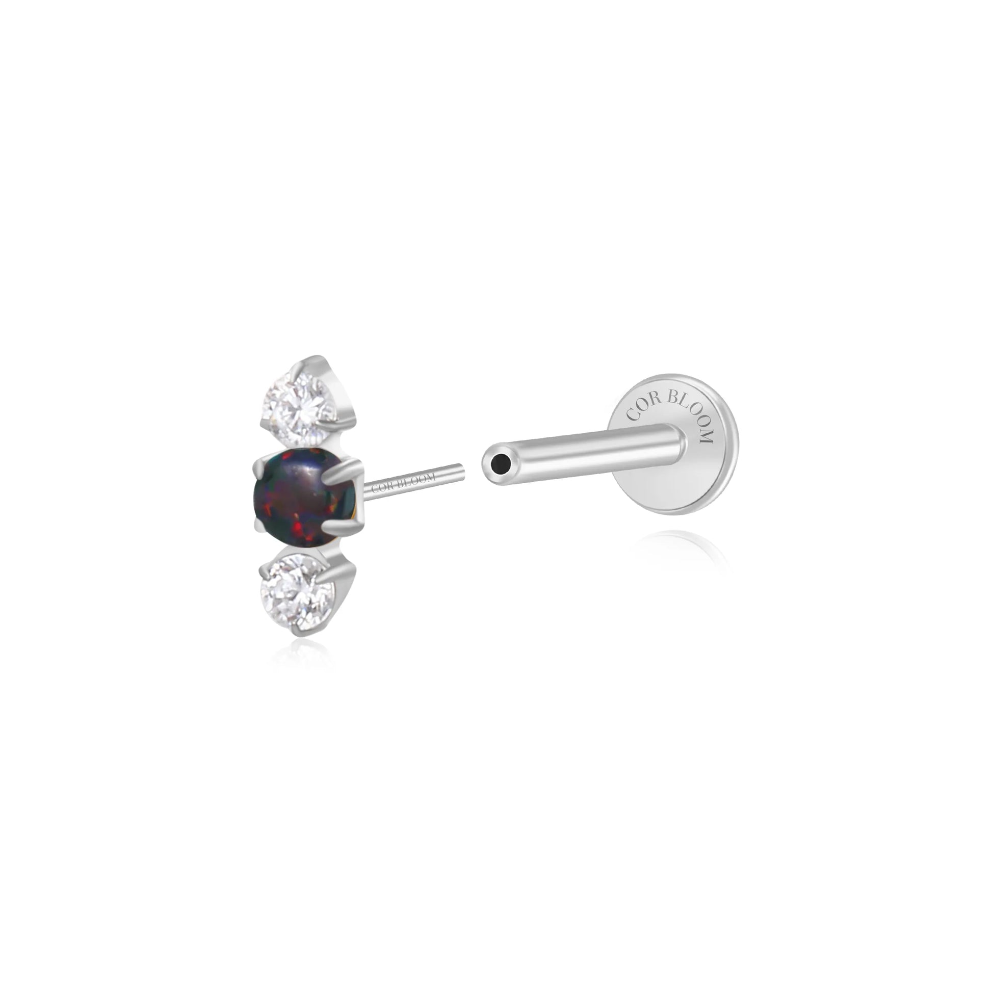 Titanium Mini Lyra Flat Back Stud - Black Opal