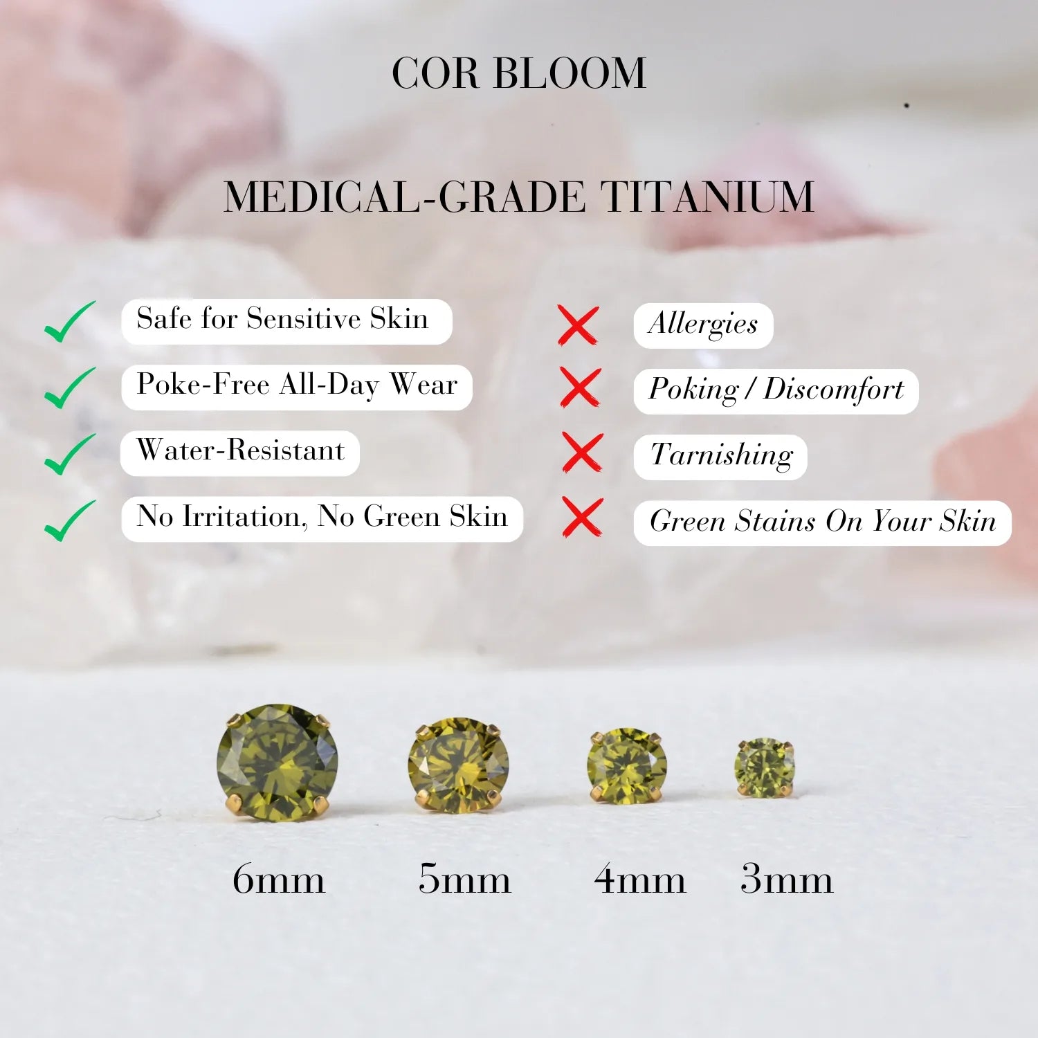 Titanium Multisize Peridot Gemstone Piercing Stud