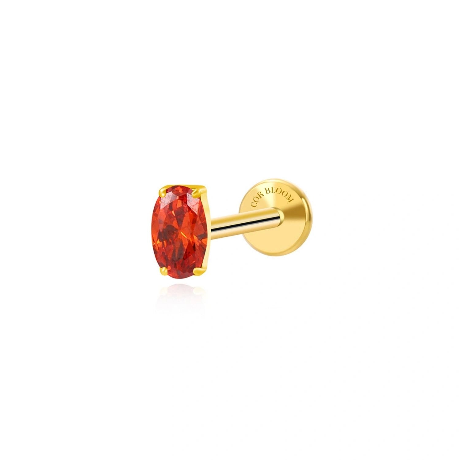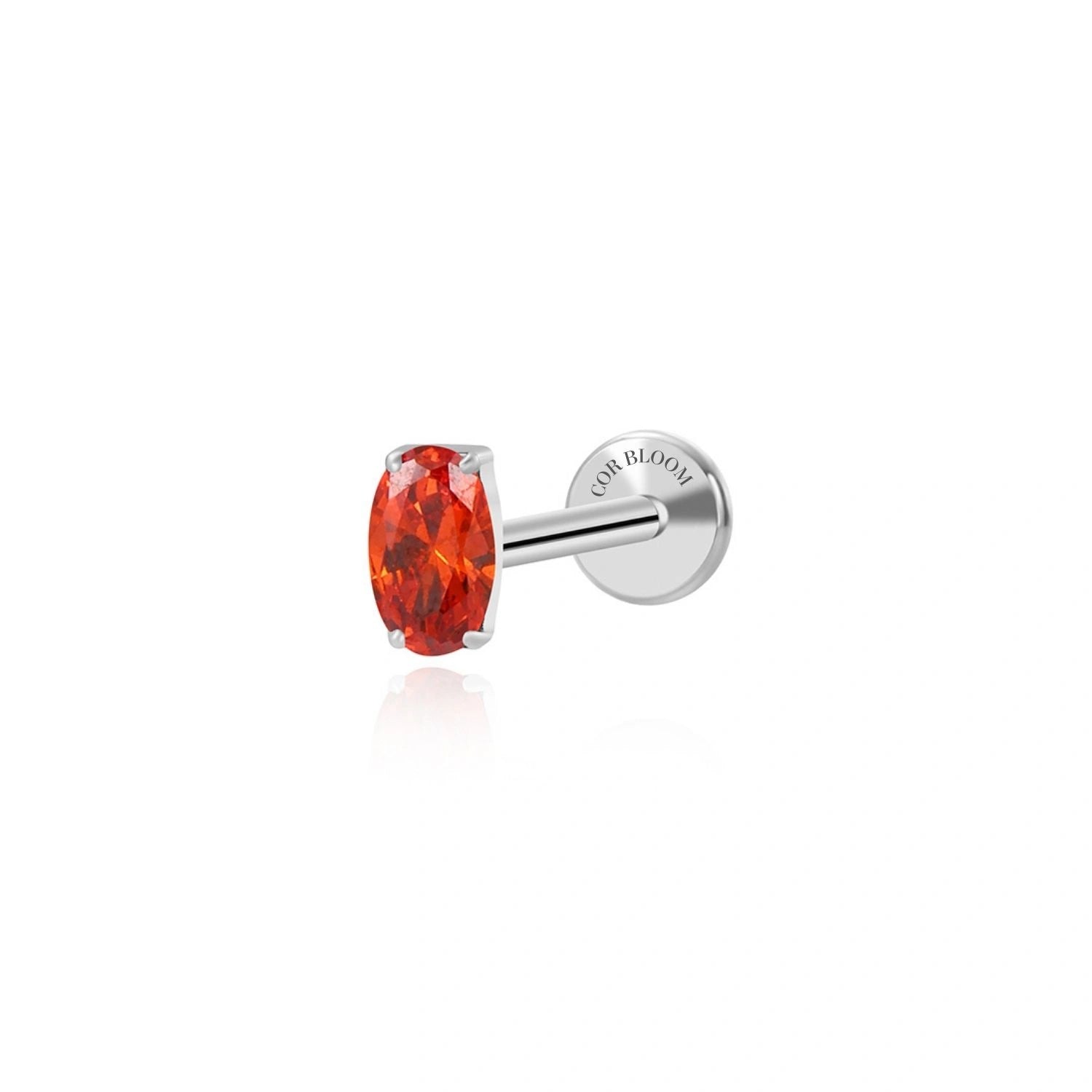 Titanium Oval Orange Red Gemstone Flat Back Stud