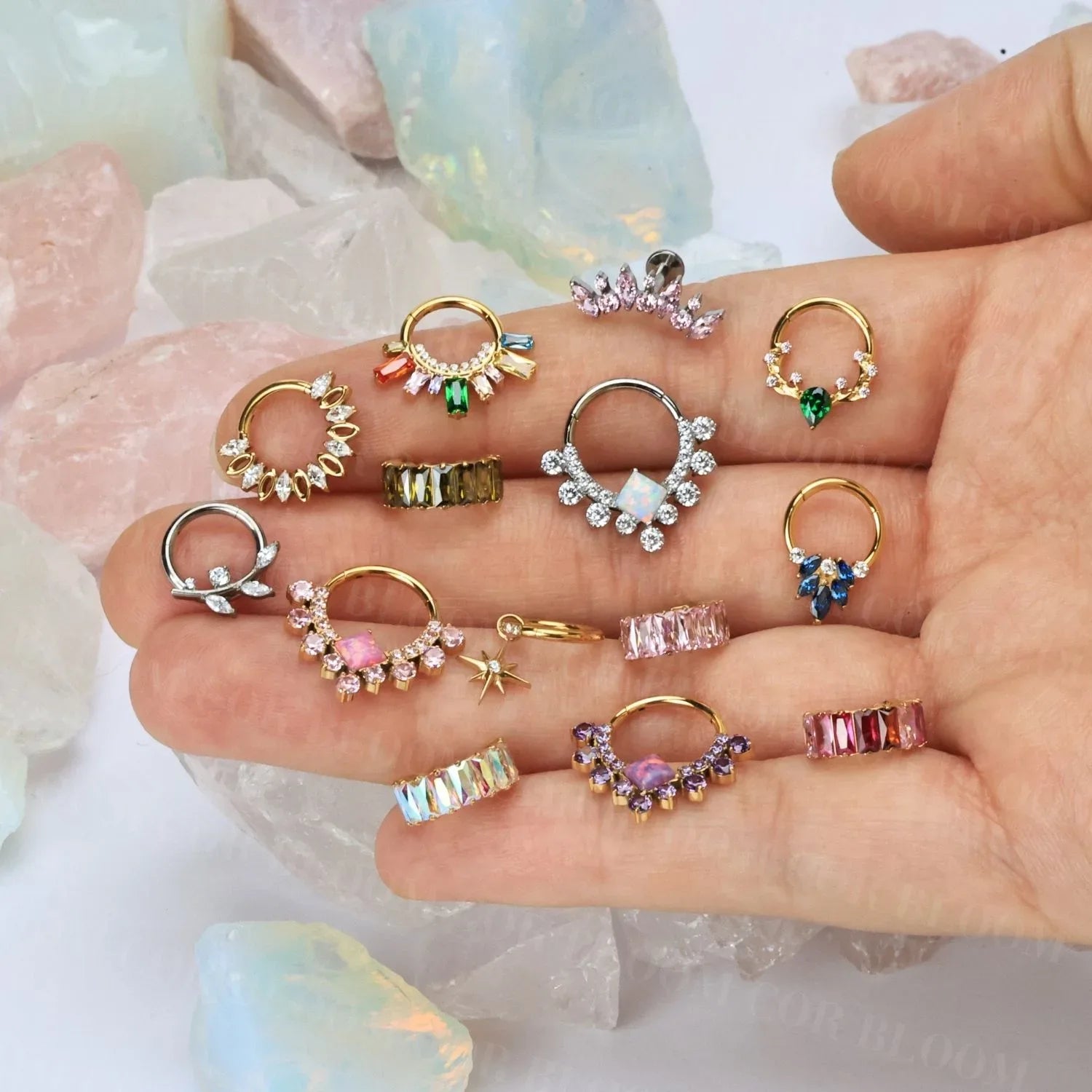 Multisized Titanium Crystal Clicker Helix Hoop | Conch Ring | Septum Clicker