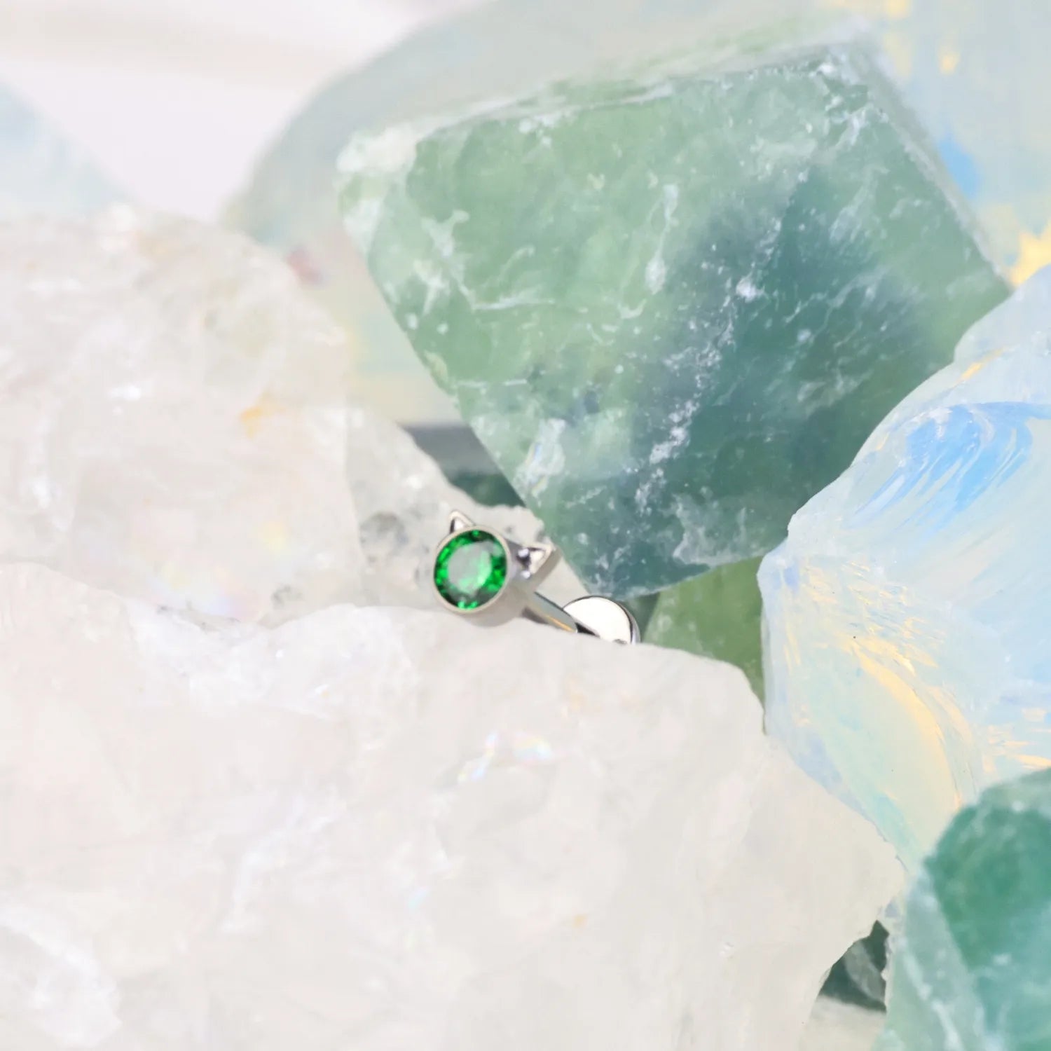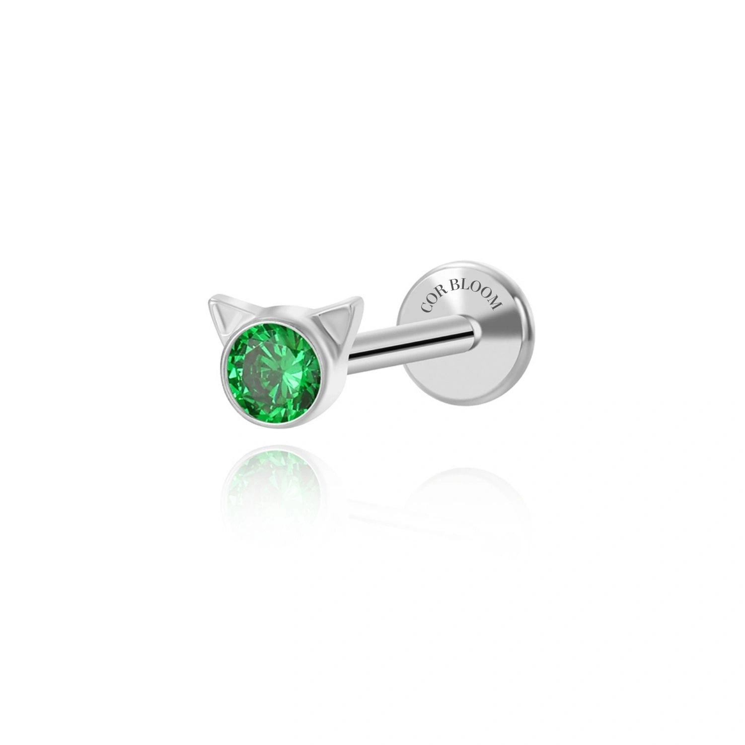 Titanium Petite Green Emerald Kitten Flat Back Stud