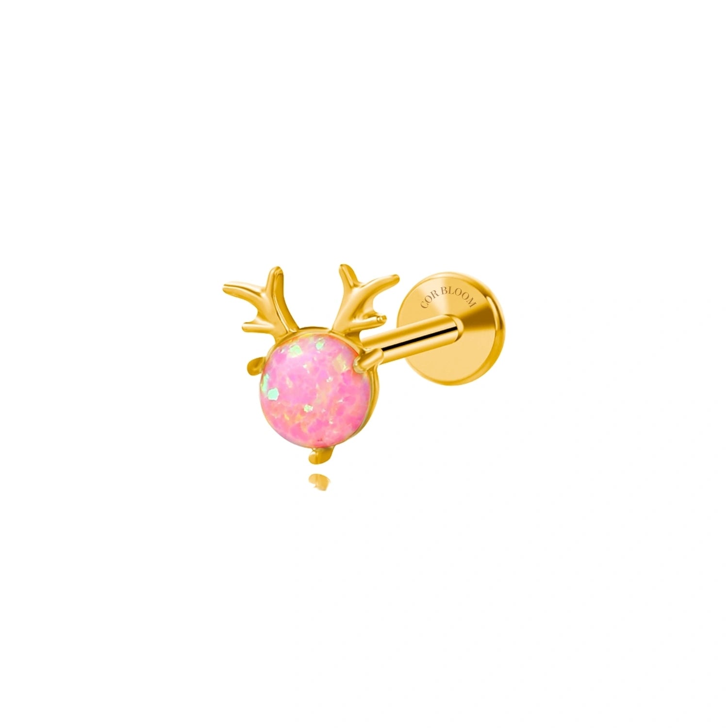 Flaunt your unique style with our Titanium Pink Opal Reindeer Piercing Earring. The pink opal reindeer adds a cute and lovely touch to any outfit. Perfect for those who love to stand out and embrace their playful side.