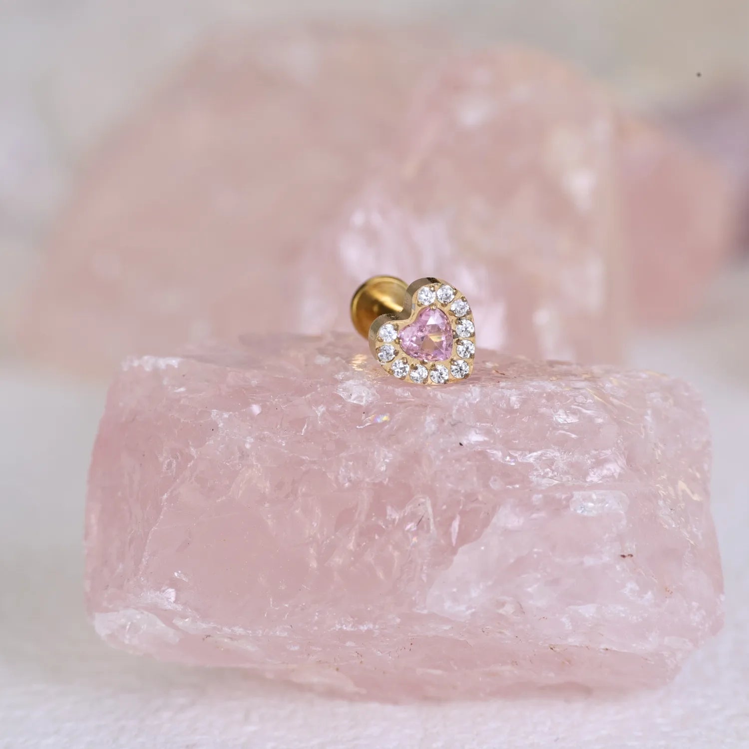 Titanium Pink Tourmaline Heart Flat Back Piercing Stud