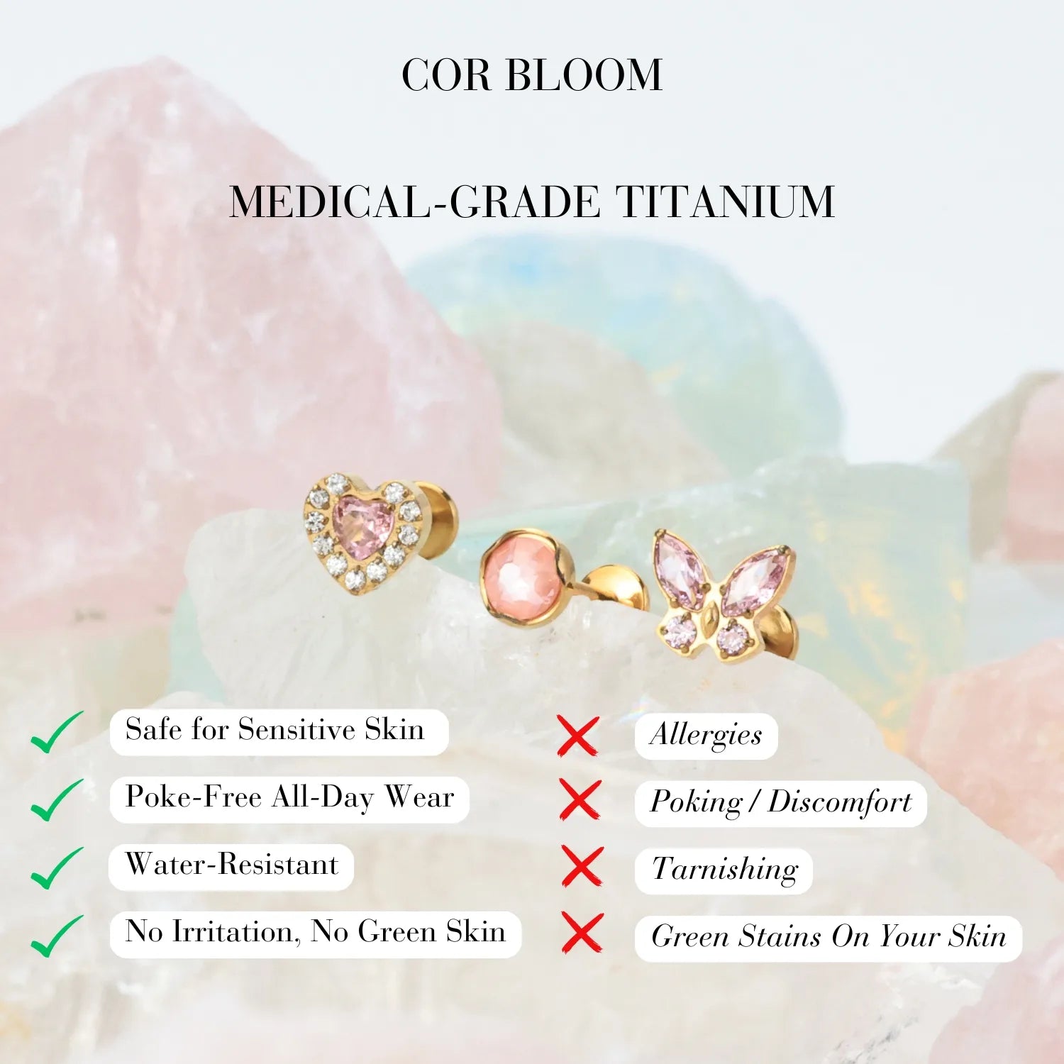 ❀ ASTM F136 Implant-Grade Titanium — safe, durable, tarnish-resistant, and ideal for both initial and healed piercings
