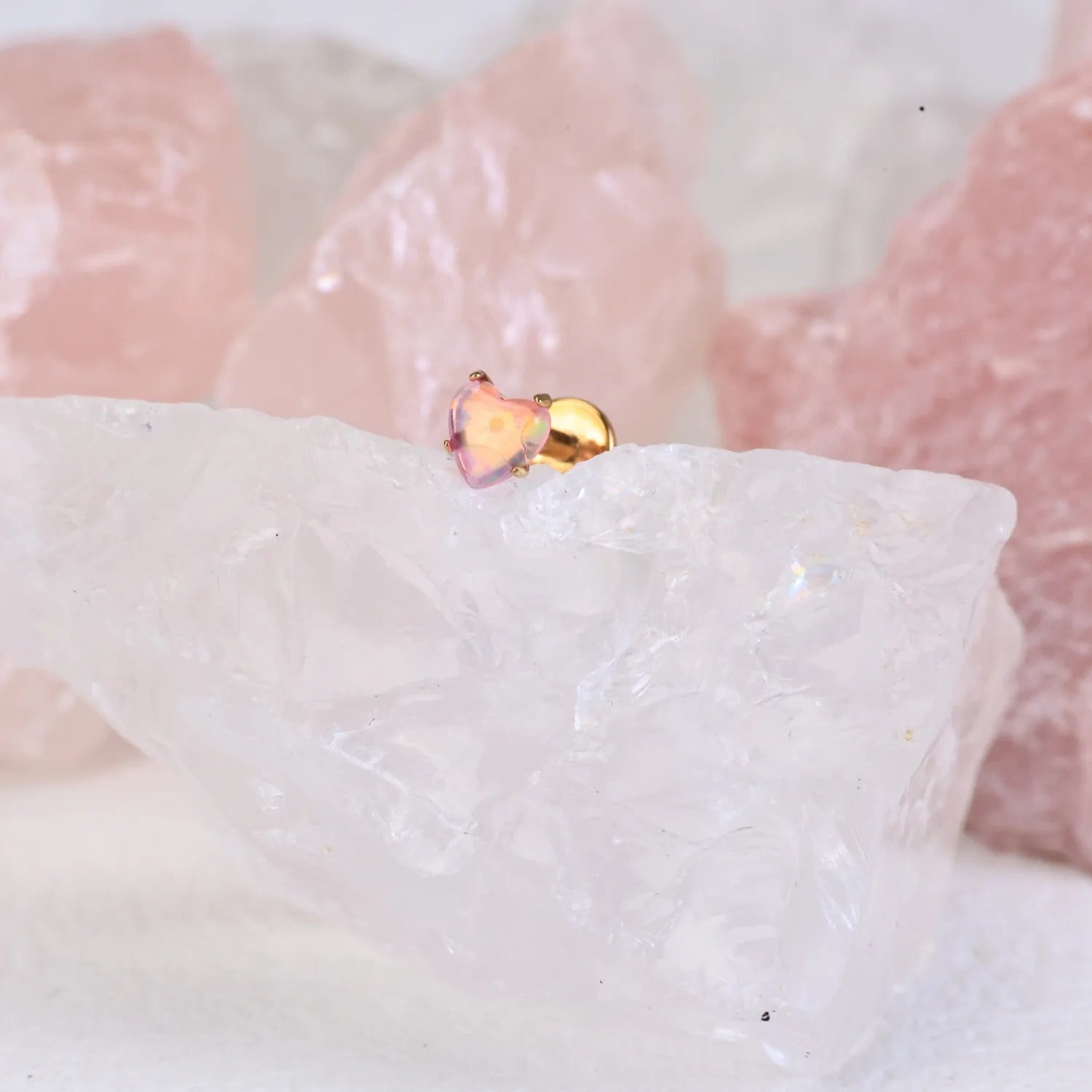 Titanium Iridescent Red Aurora Opal Heart Piercing Stud