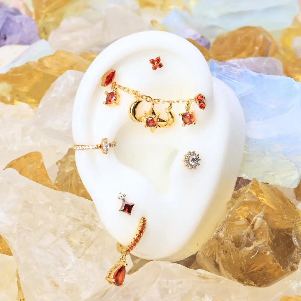 Iyla Red Garnet Guiding Star & Crescent Moon Chain Attachment