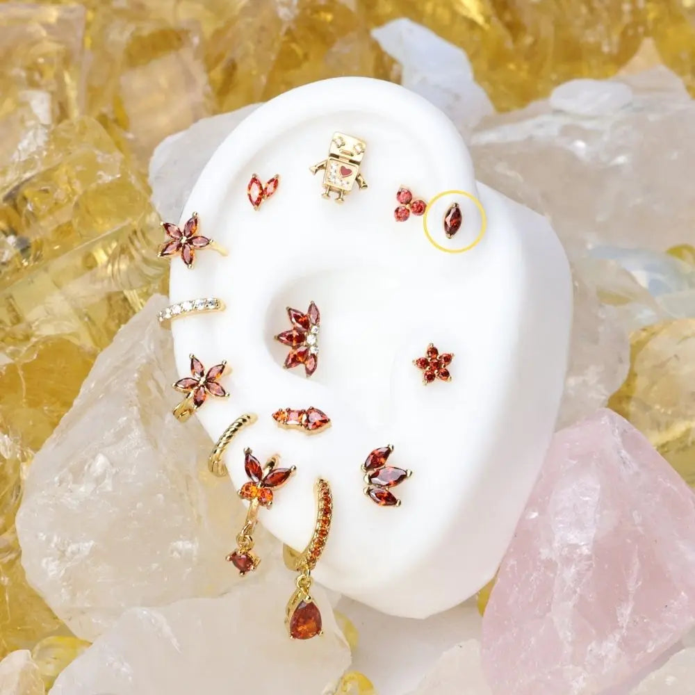 Titanium Elynn Red Garnet Marquise Flat Back Stud