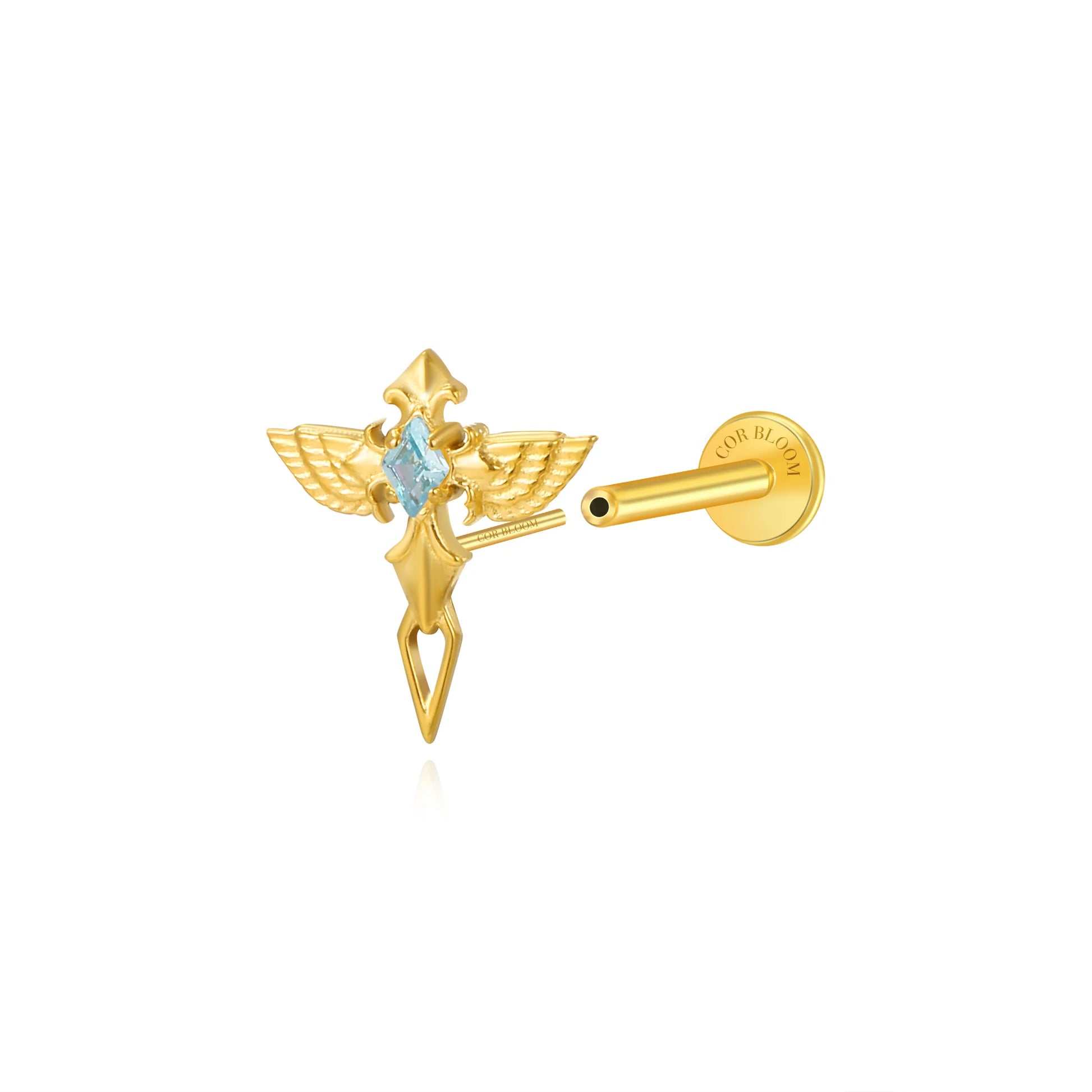 Titanium Hreremus Blue Sapphire Bat Flat Back Stud