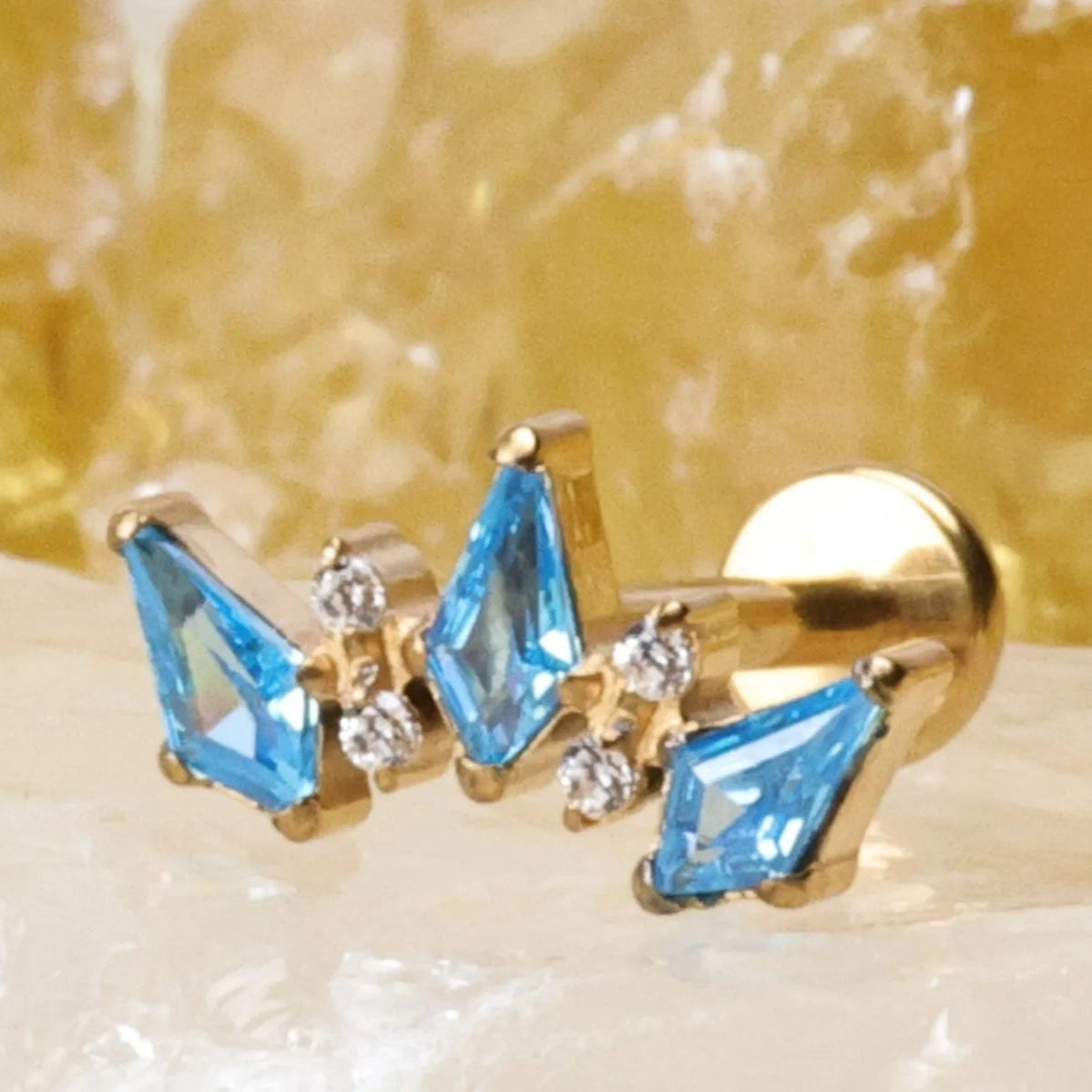 Titanium Xyla Rhombus Gemstone Stud - Blue Sapphire