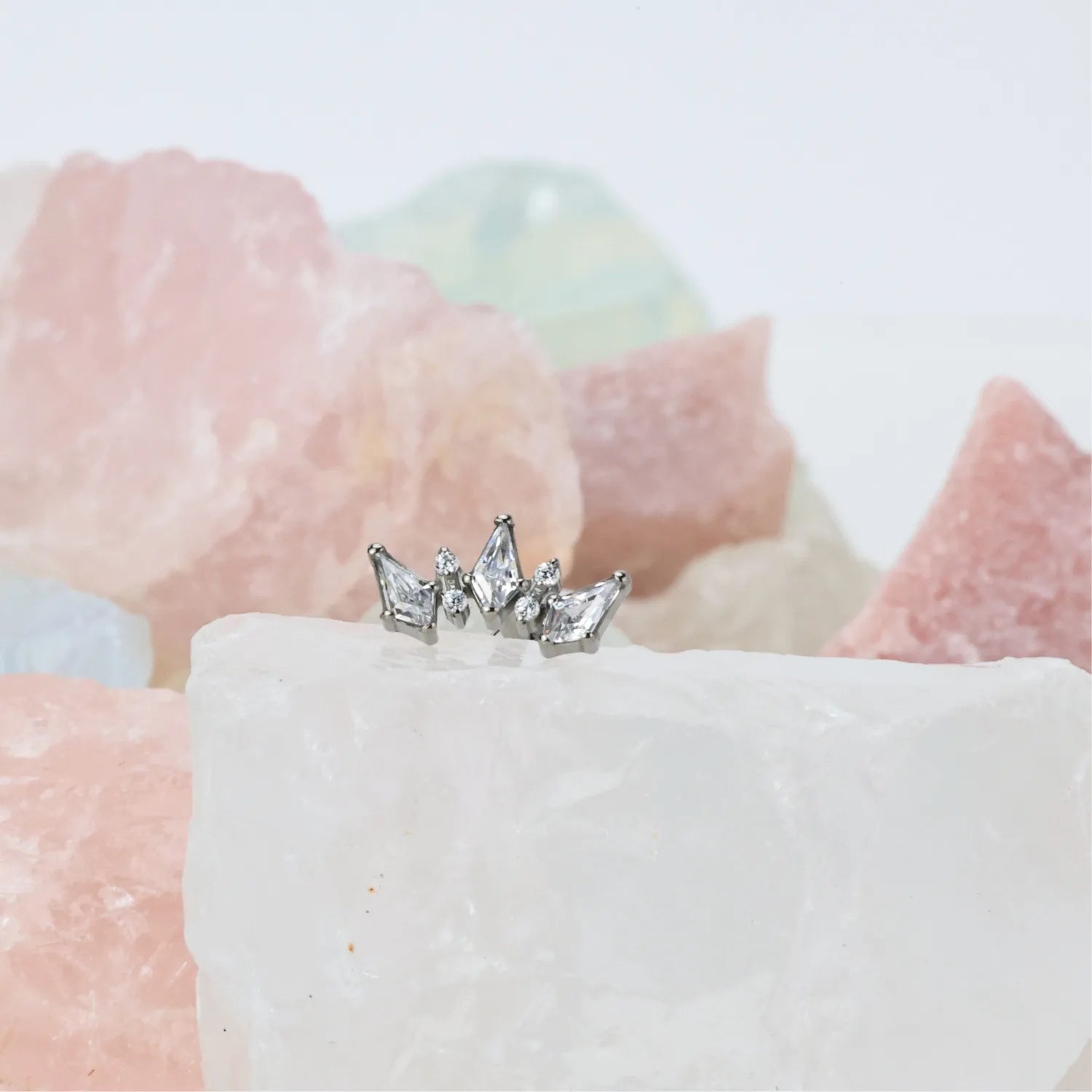 Titanium Sage White Diamond Crown Flat Back Stud