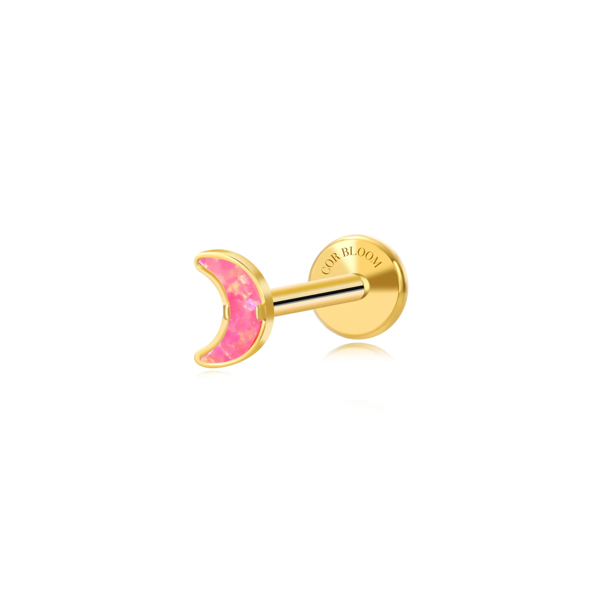 Titanium Sena Pink Opal Mini Moon Flat Back Stud