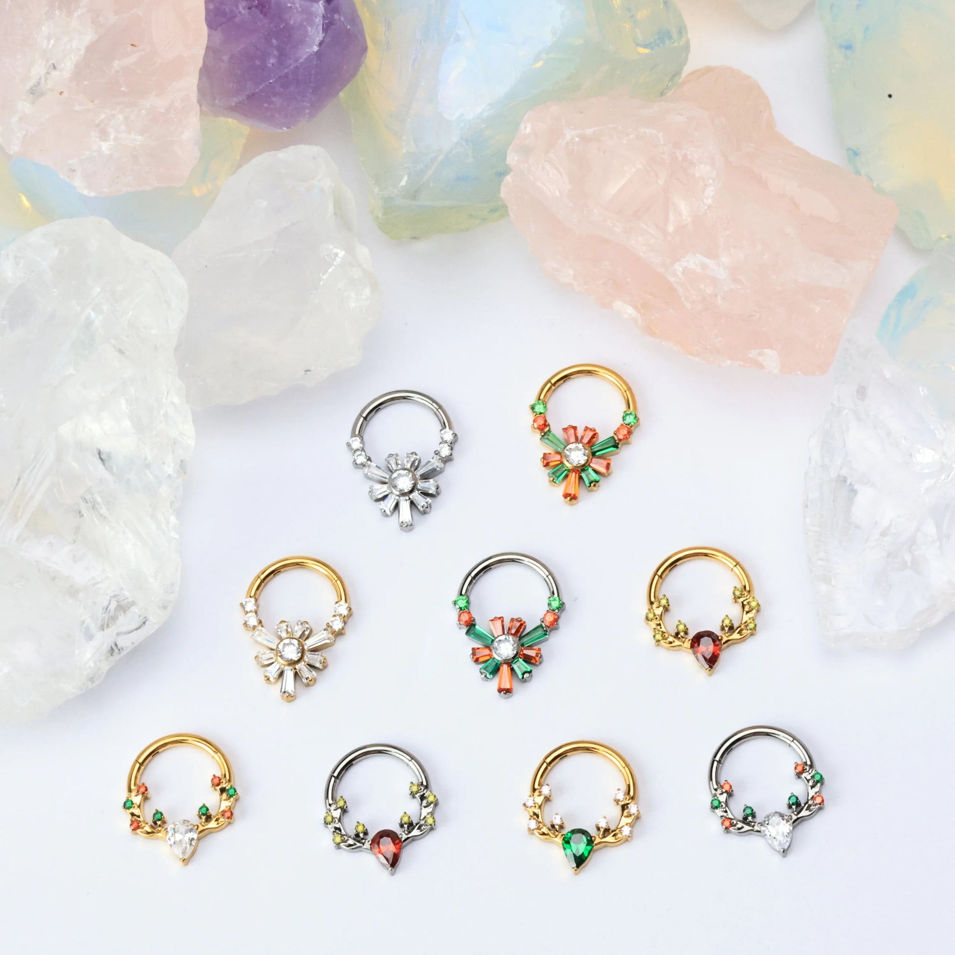 Multisized Titanium Crystal Clicker Helix Hoop | Conch Ring | Septum Clicker