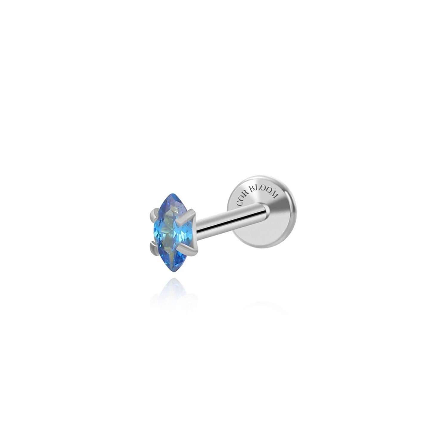 Titanium Small Blue Sapphire Marquise Flat Back Stud