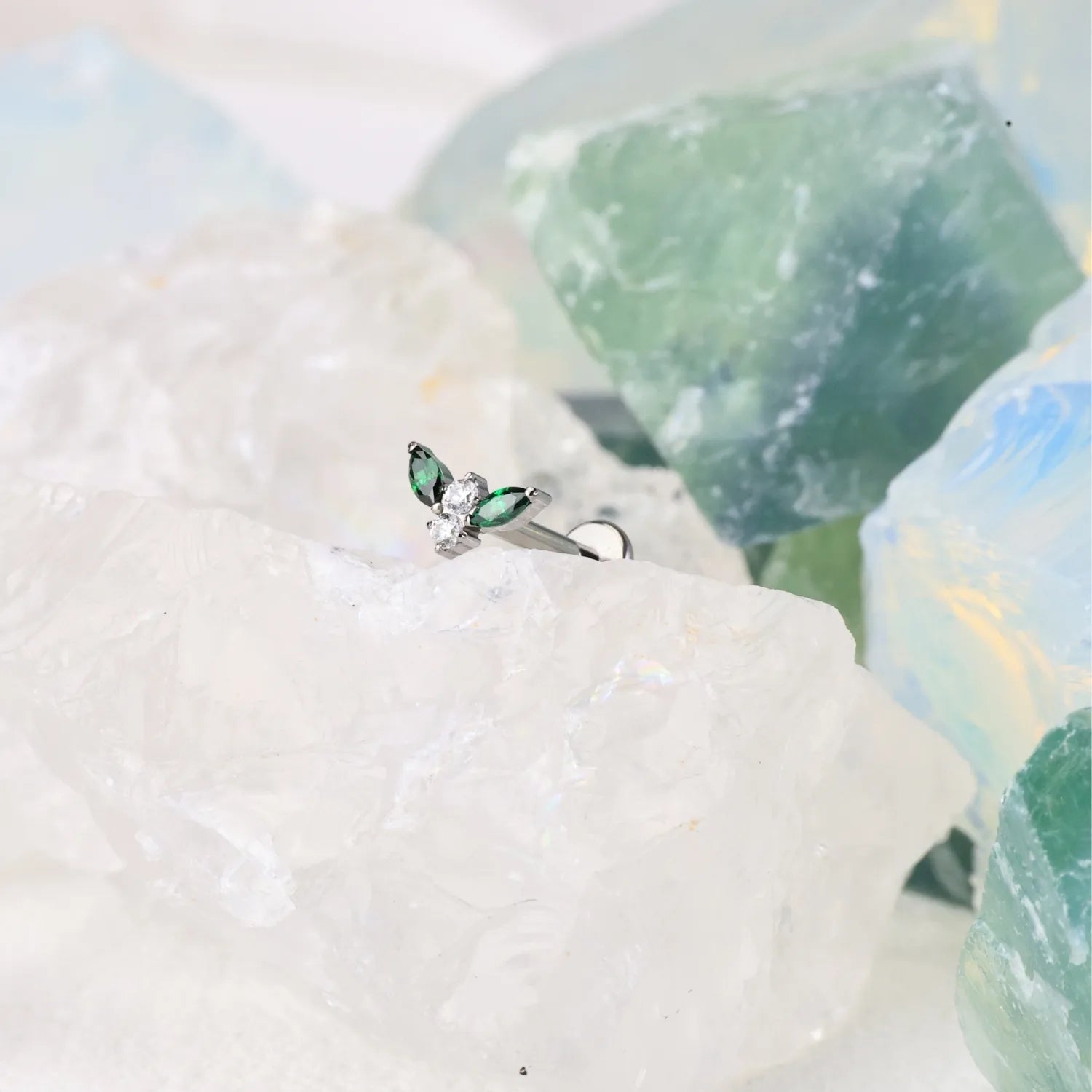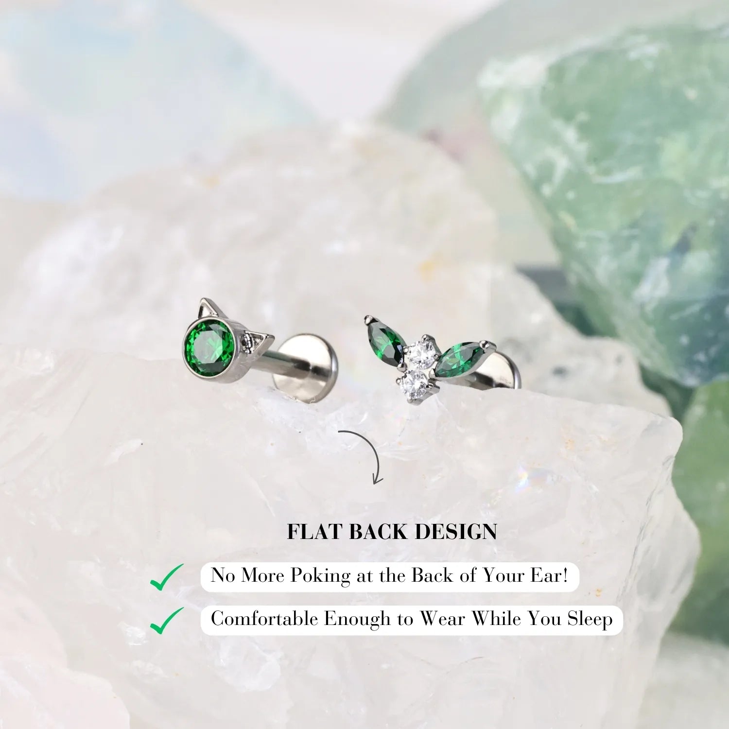 Titanium Small Green Emerald Kiara Moth Flat Back Stud