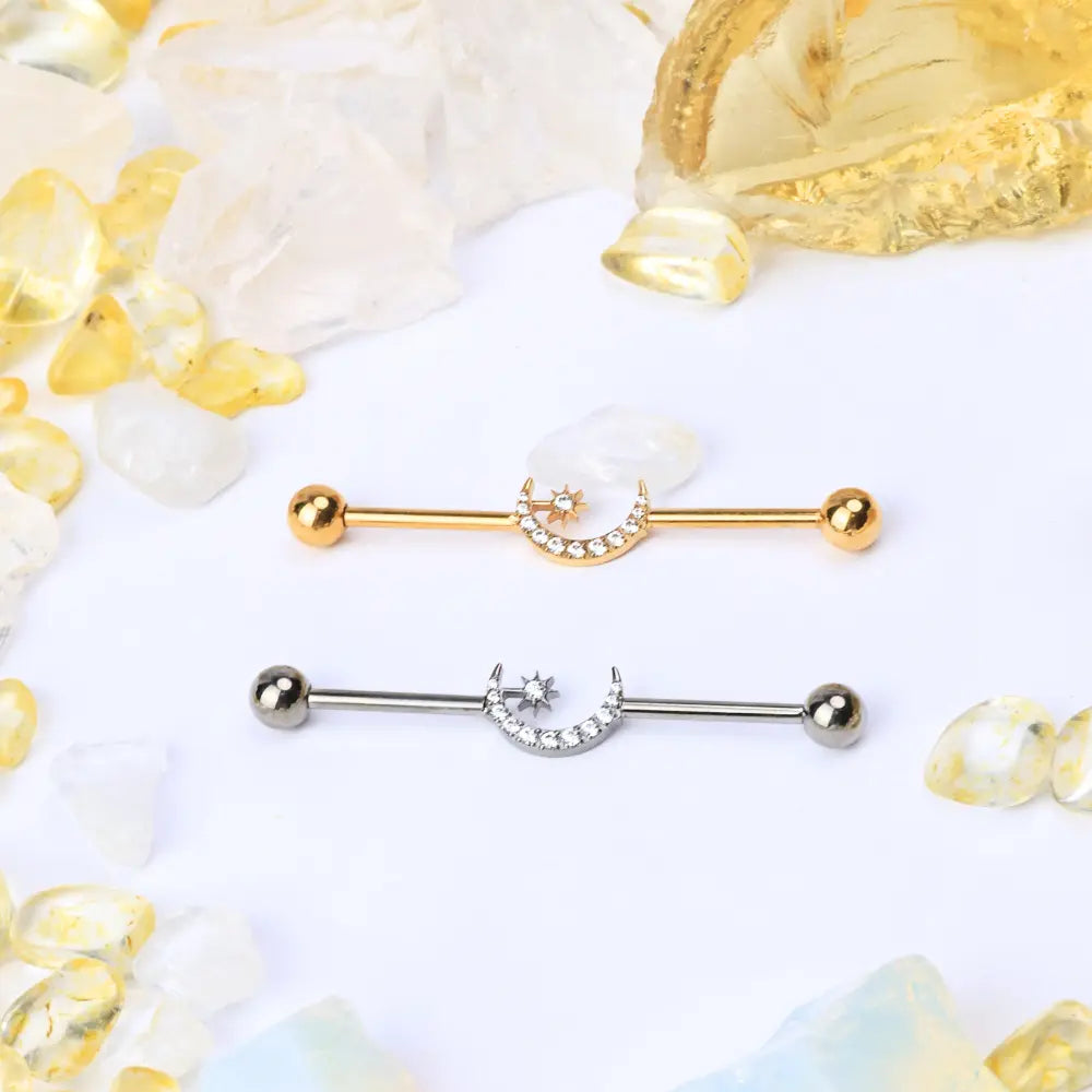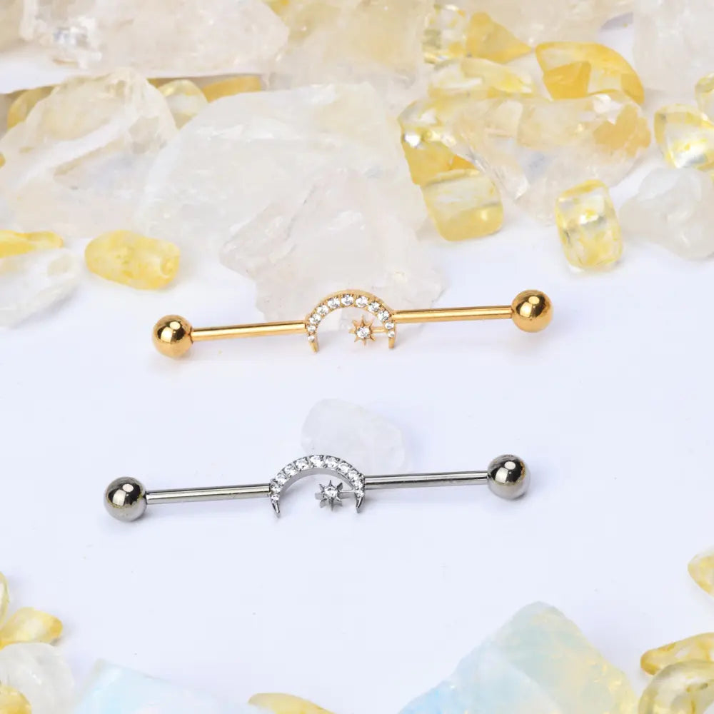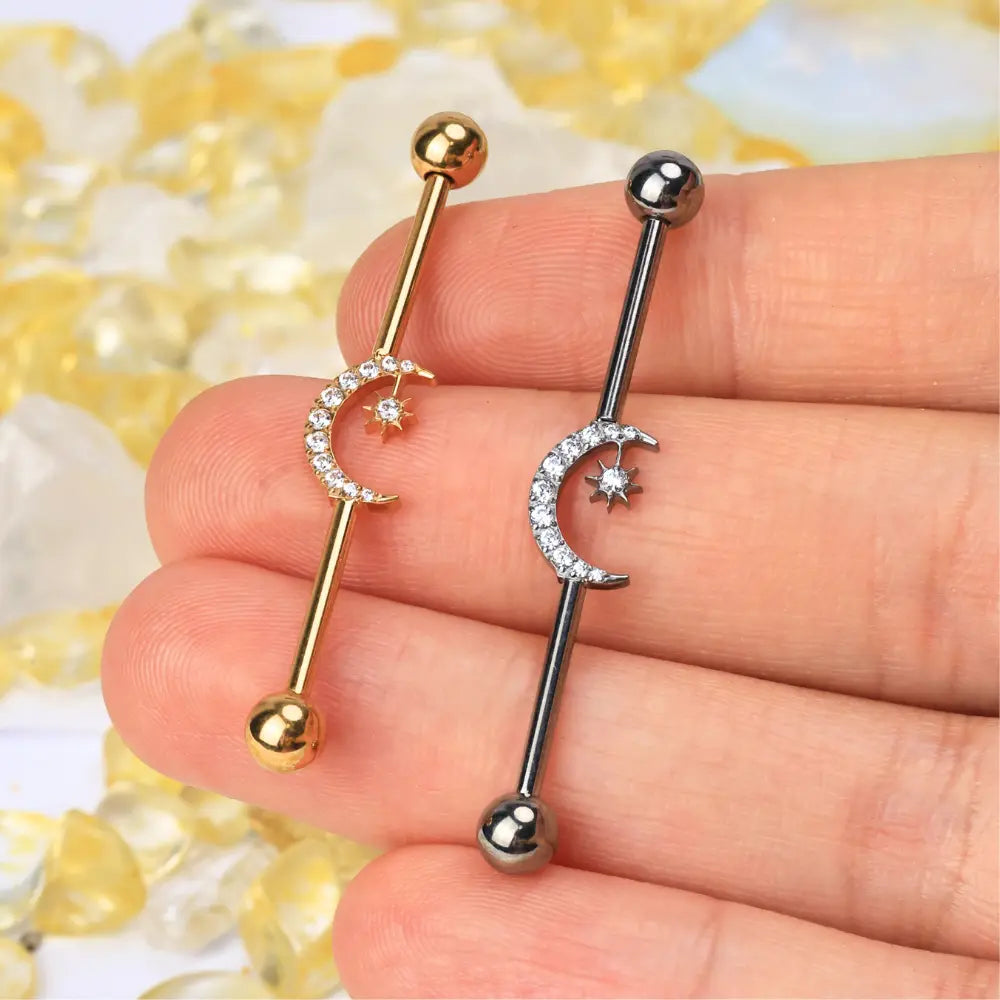Titanium Sparkling Crescent Moon Industrial Barbell (14G | 38mm)