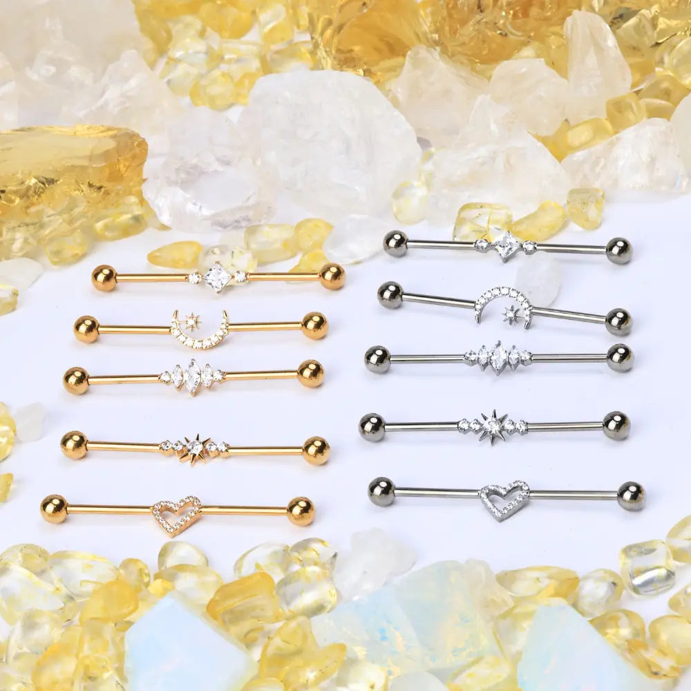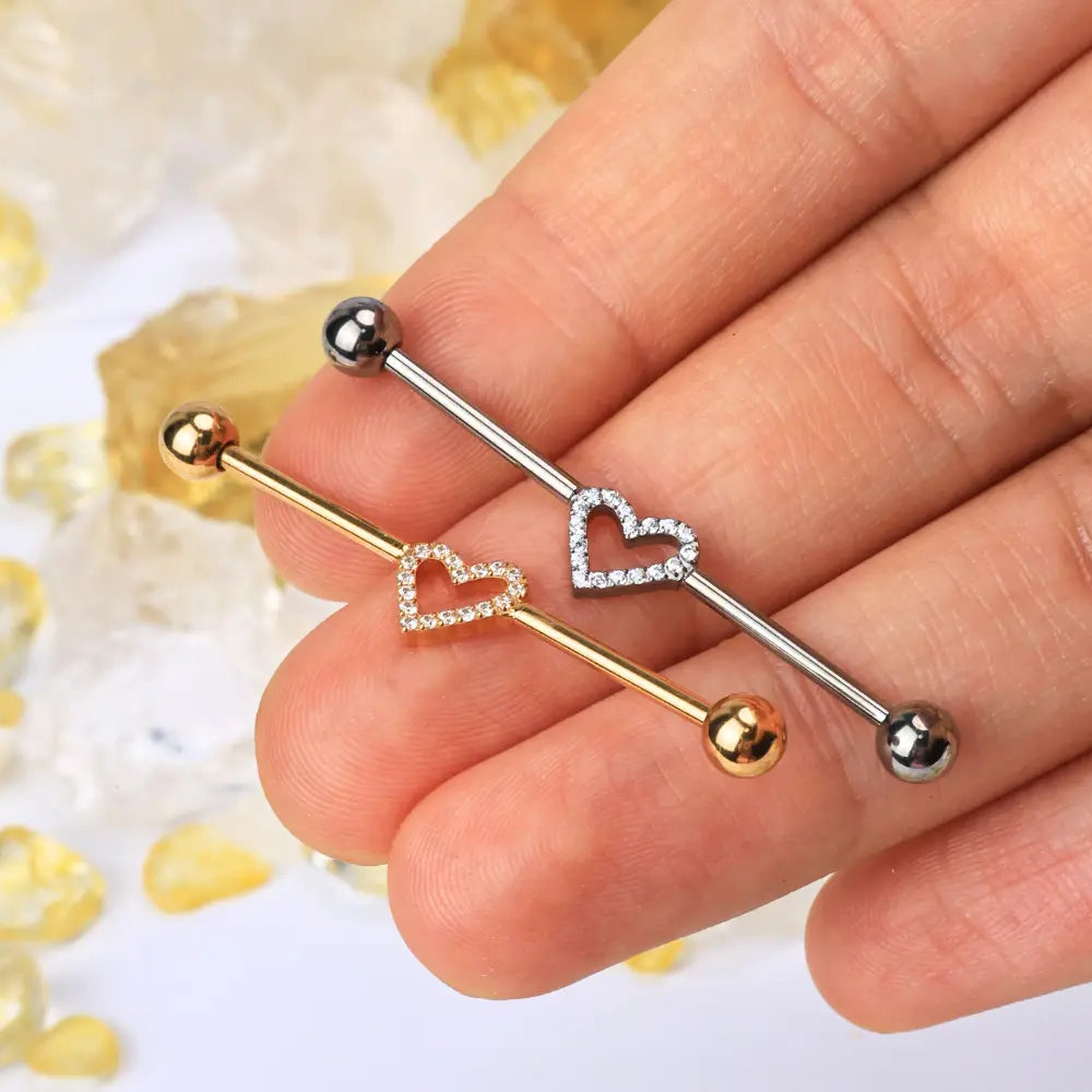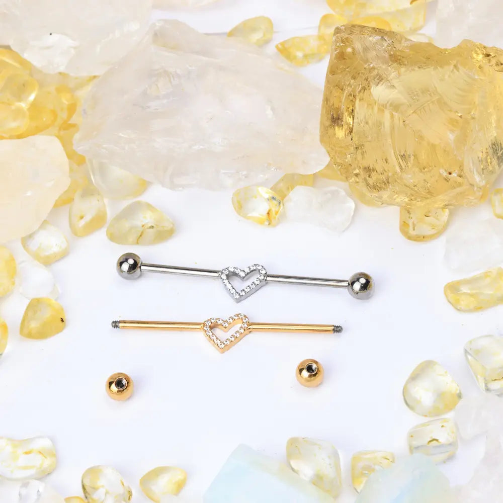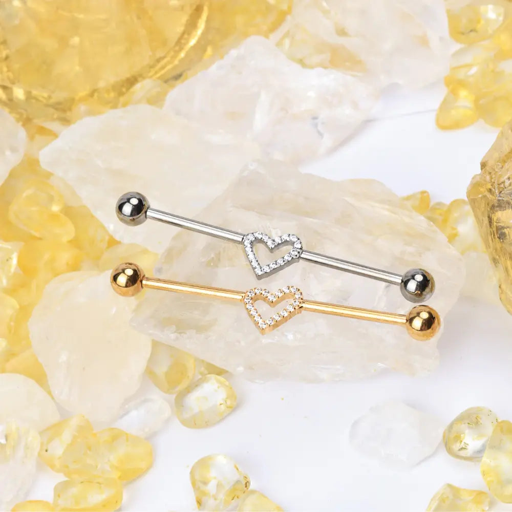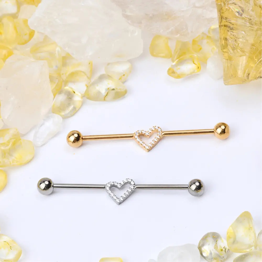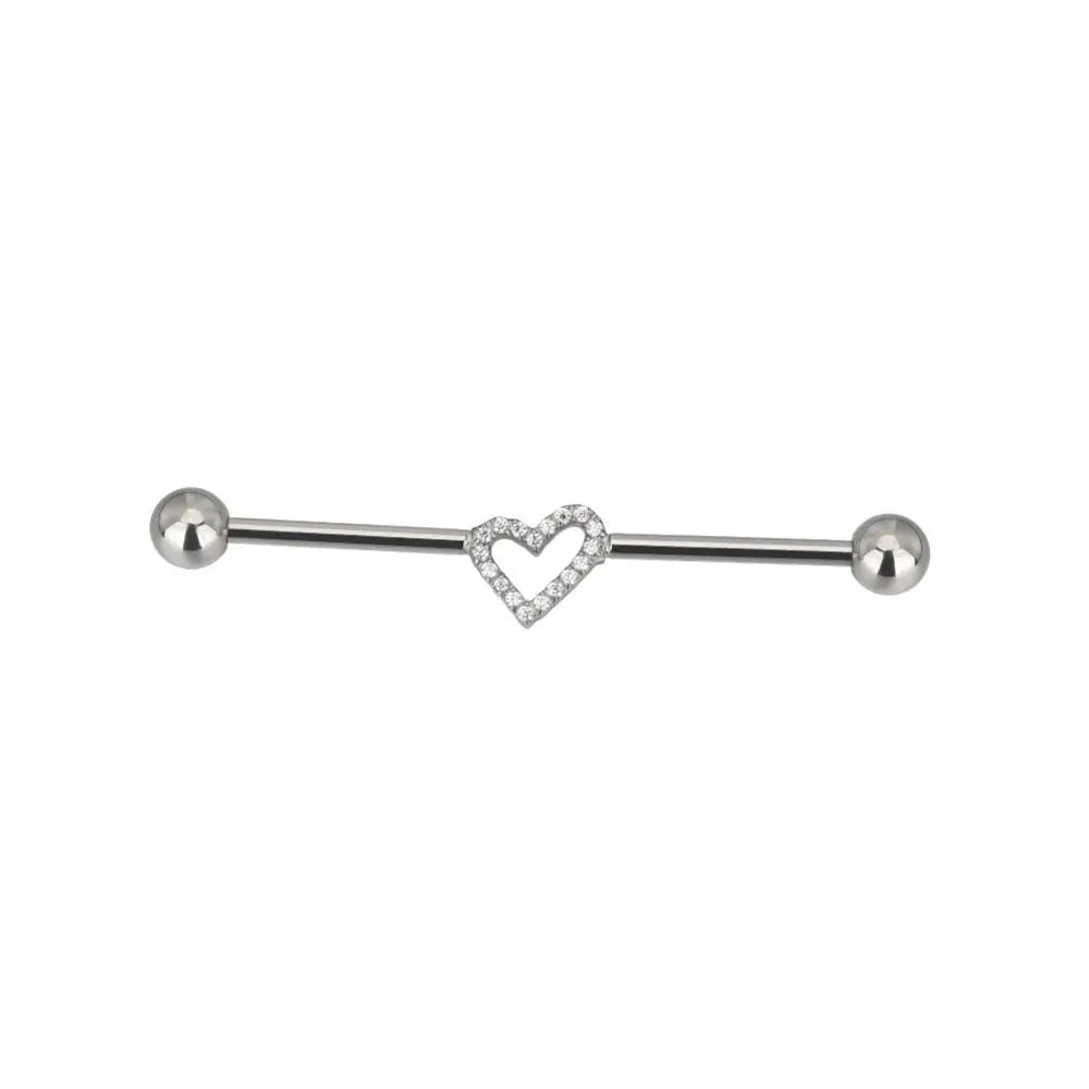 Titanium Sparkling Heart Industrial Barbell (14G | 38mm)