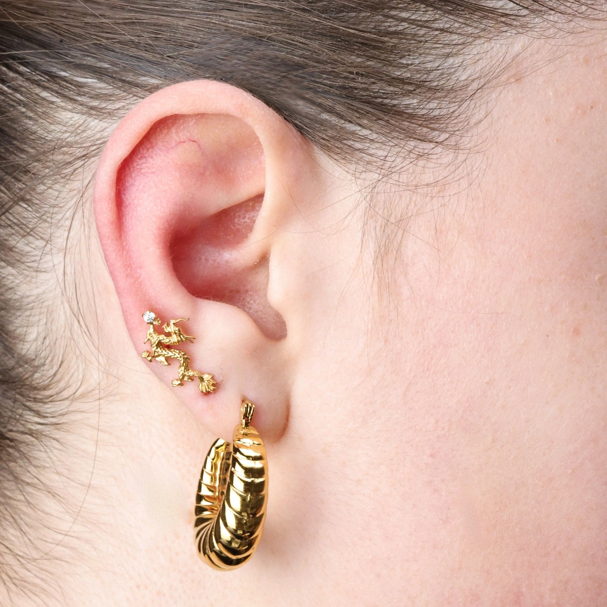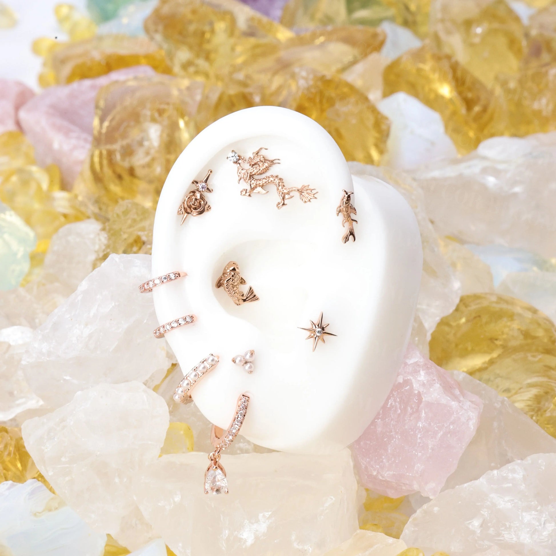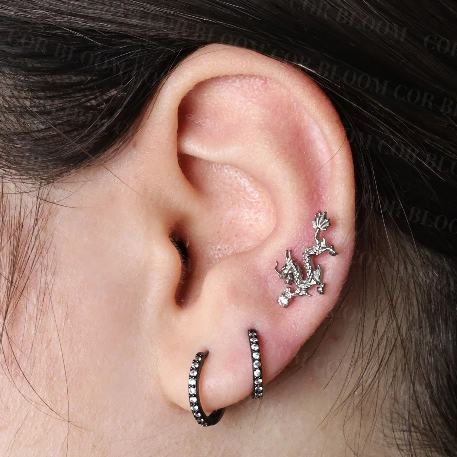 Unleash your bold and adventurous side with our Titanium Statement Diamond Dragon Flat Back Stud. Hand-crafted with meticulous attention to detail, this statement piece will bring a fierce edge to your look. Get ready to make a statement and stand out from the crowd!