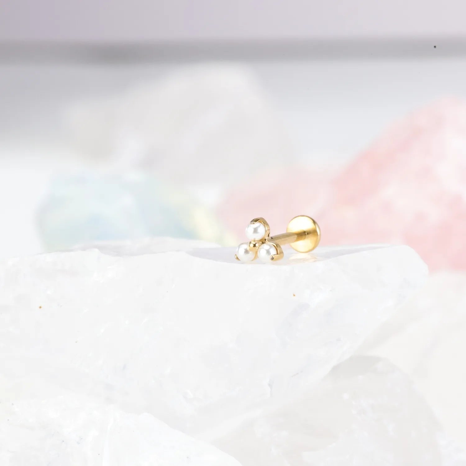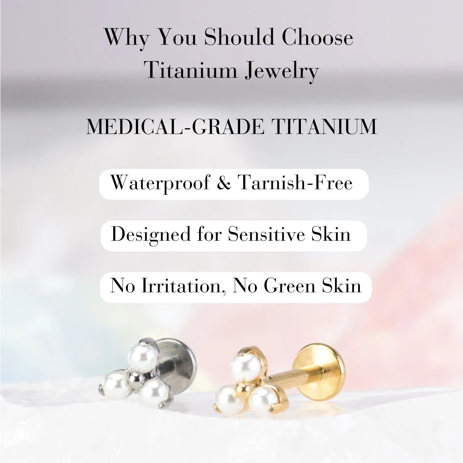 Titanium Freya Trio Pearl Flat Back Piercing Stud